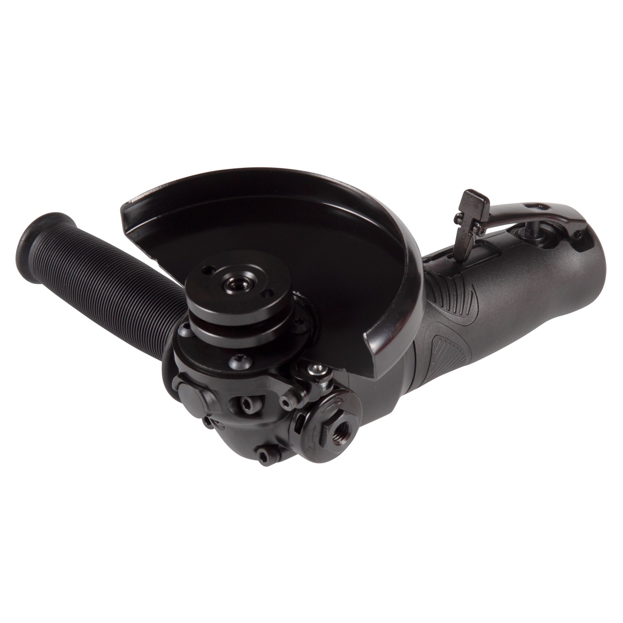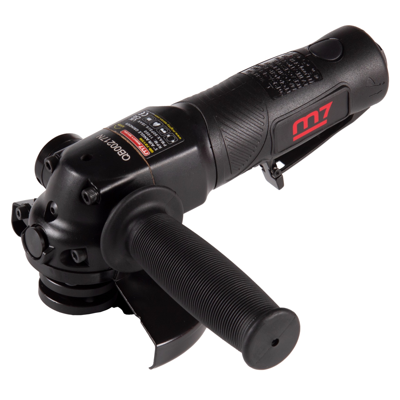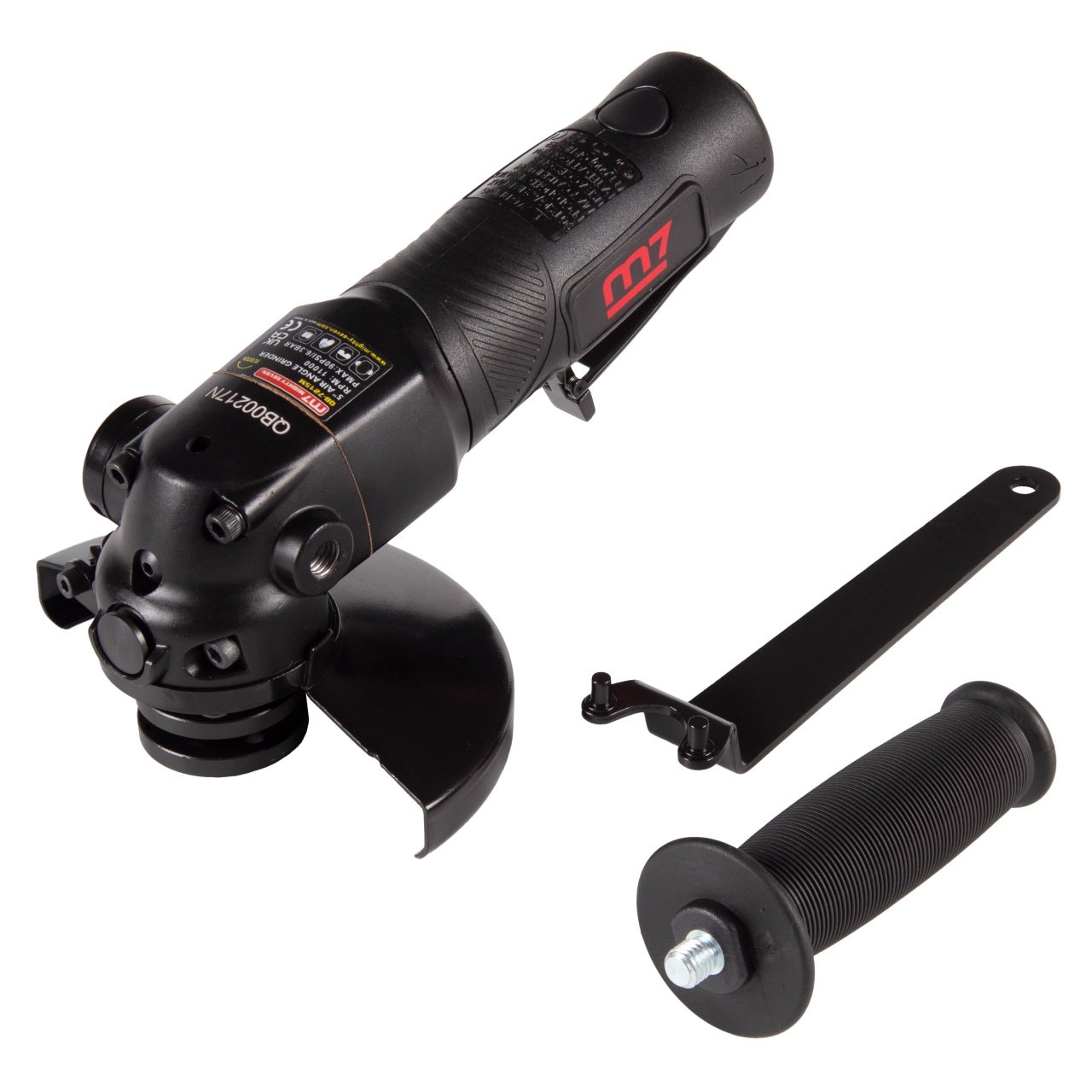 125x22 мм Типы используемых дисков отрезные от 1 мм, зачистные до 6 мм Шпиндель M14x2,0 Скорость вращения 11 000 об/мин Мощность 1,3 Hp Тип включателя клавишный, с предохранителем Дополнительная рукоять есть, резьба М10x1,5 Защитный кожух есть, +55/–55 градусов, клипсовый фиксатор Зажимная гайка под ключ Фиксатор шпинделя кнопочный Питание сжатый воздух Рабочее давление 6,3 бар Среднее потребление воздуха 119 л/мин Резьба на входе F1/4" Выпуск воздуха в области дополнительной рукояти, регулируемый Сечение шланга (рекомендованное) не менее 10 мм Уровень шума 90 дБ Вибрация 1,2 м/с2 Габаритная длина (без диска) 230 мм Снаряжённый вес (без диска) 1,733 кг Материалы алюминий, сталь, резинопластик Упаковка картонный короб Размеры в упаковке 305x205x125 мм Вес поставки 2,362 кг Страна производителя Тайвань
