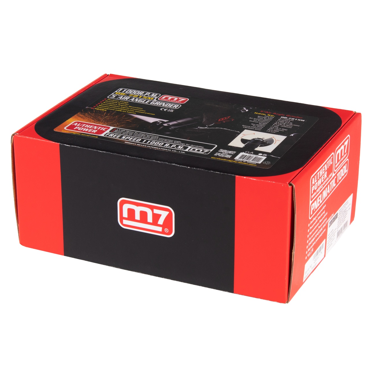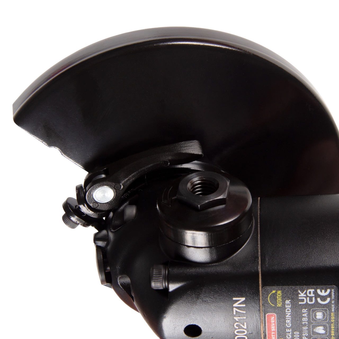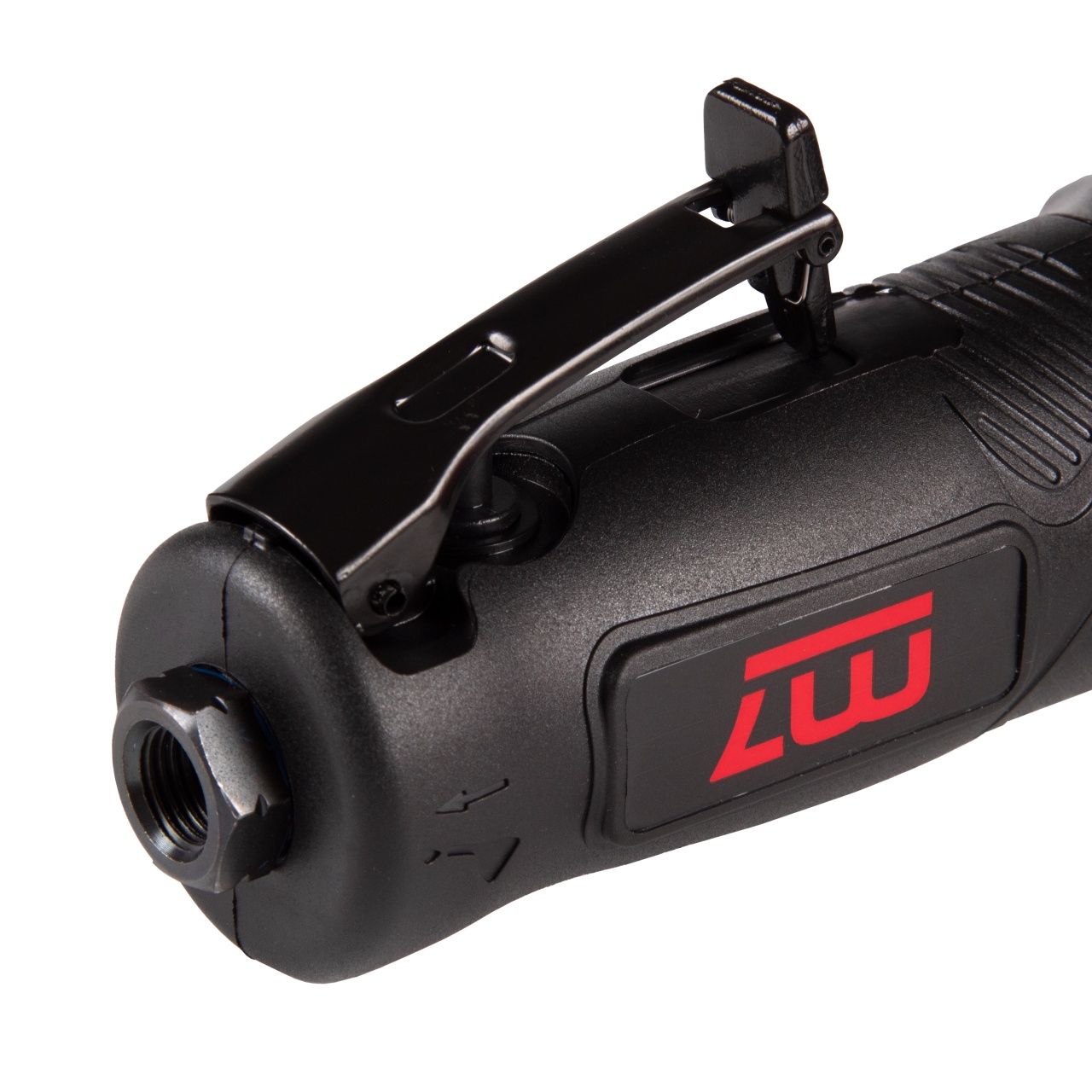 125x22 мм Типы используемых дисков отрезные от 1 мм, зачистные до 6 мм Шпиндель M14x2,0 Скорость вращения 11 000 об/мин Мощность 1,3 Hp Тип включателя клавишный, с предохранителем Дополнительная рукоять есть, резьба М10x1,5 Защитный кожух есть, +55/–55 градусов, клипсовый фиксатор Зажимная гайка под ключ Фиксатор шпинделя кнопочный Питание сжатый воздух Рабочее давление 6,3 бар Среднее потребление воздуха 119 л/мин Резьба на входе F1/4" Выпуск воздуха в области дополнительной рукояти, регулируемый Сечение шланга (рекомендованное) не менее 10 мм Уровень шума 90 дБ Вибрация 1,2 м/с2 Габаритная длина (без диска) 230 мм Снаряжённый вес (без диска) 1,733 кг Материалы алюминий, сталь, резинопластик Упаковка картонный короб Размеры в упаковке 305x205x125 мм Вес поставки 2,362 кг Страна производителя Тайвань