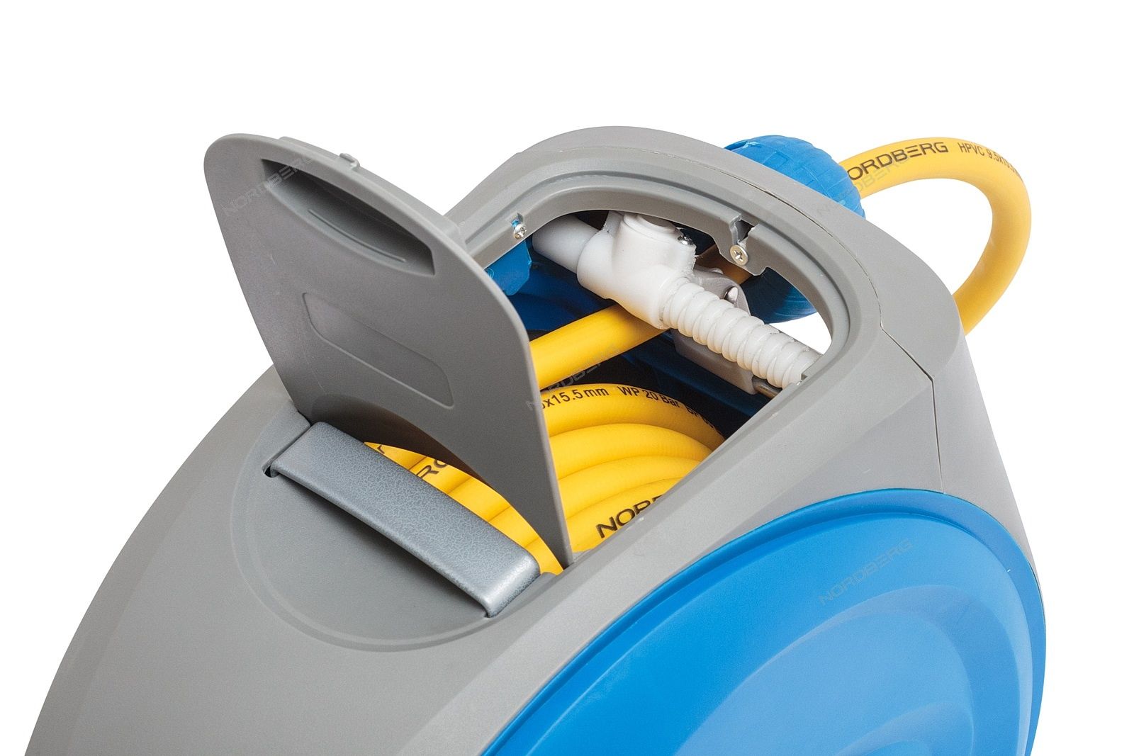 Шланг NORDBERG HR1015HPVC предназначен для соединения воздухонагнетательного оборудования с различным пневматическим инструментом. Изготовлен из армированного гибридного ПВХ. Имеет резьбовые штуцеры — M1/4''. Размещен на катушке закрытого типа. Катушка оснащена автоматической фиксацией через каждый метр шланга. Имеет поворотную штангу для крепления на стене или стойке подъёмника.