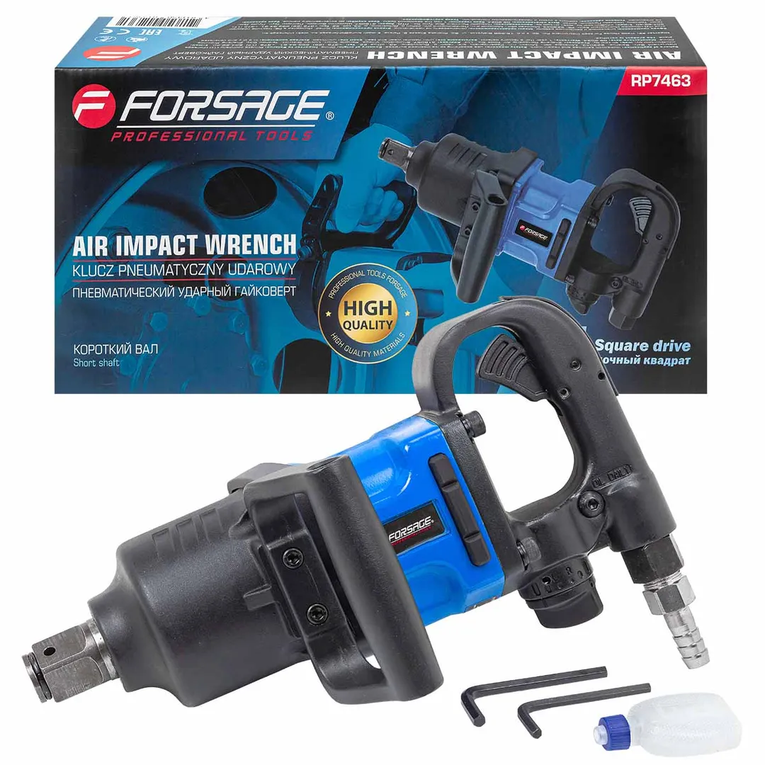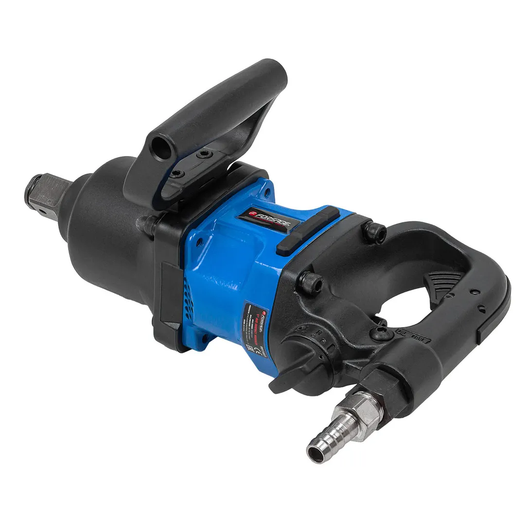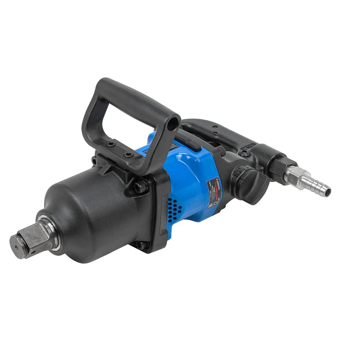 Пневматический гайковерт ударный с коротким валом оснащен квадратом шпинделя размером 1" (25,4 мм), который позволяет использовать широкий спектр головок и насадок различных размеров. За счет высокого крутящего момента и наличия эффективного ударного механизма, данный пнемвогайковерт с реверсом и регулировкой усилия способен успешно справляться с самыми высоконагруженными резьбовыми соединениями, и работать с насадками максимальных типоразмеров. Для удобства применения инструмент весом 7.8 кг оснащен основной рукоятью пистолетного типа и надежной дополнительной боковой ручкой. Инструмент комплектуется емкостью для смазки и регулировочными ключами. Пневматический ударный гайковерт с реверсом и регулировкой усилия затяжки предназначен для авторемонтных предприятий и производства работ в шиномонтажных мастерских, в том числе на грузовых автомобилях самой высокой грузоподъемности.