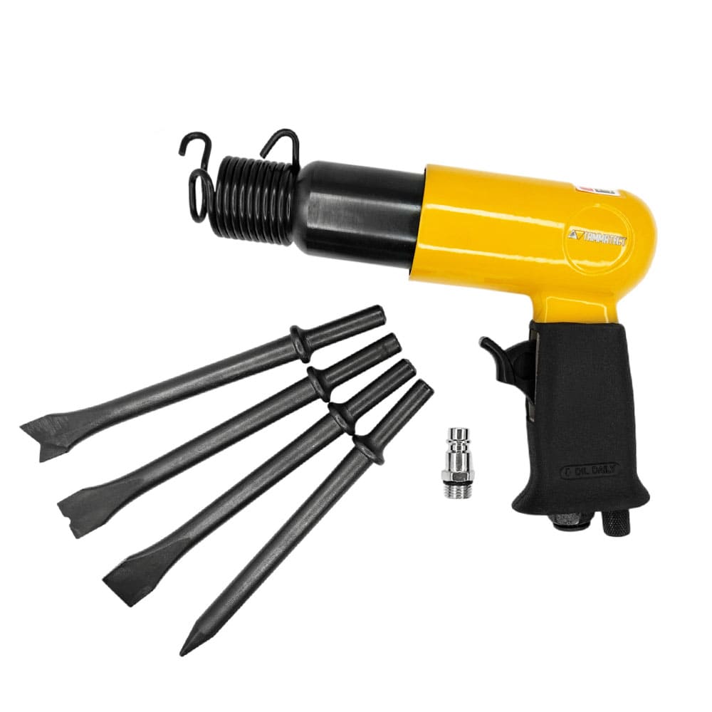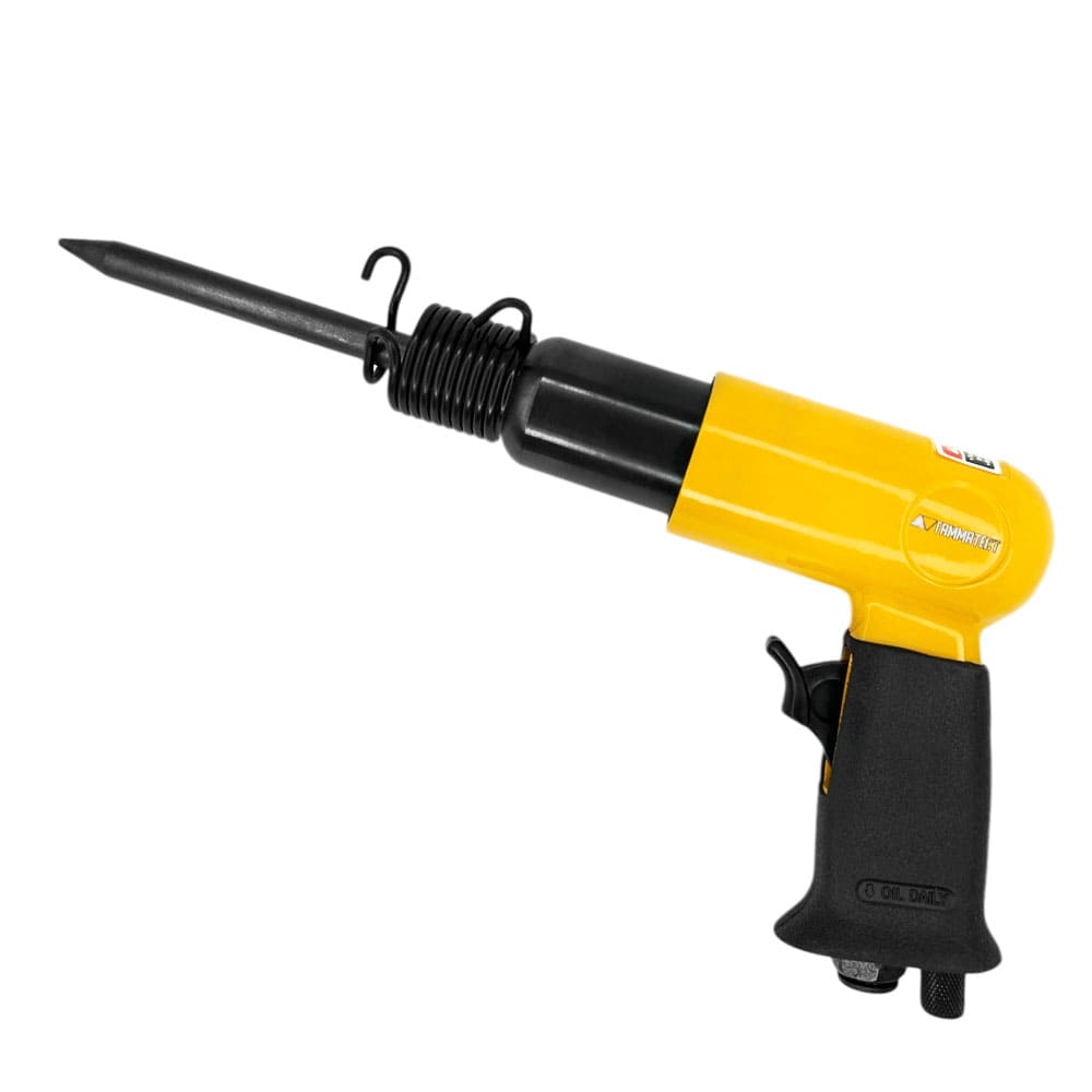 Мощный пневмомолоток, предназначенный для быстрой и точной обработки металлических и минеральных поверхностей, а также для шиномонтажных работ.