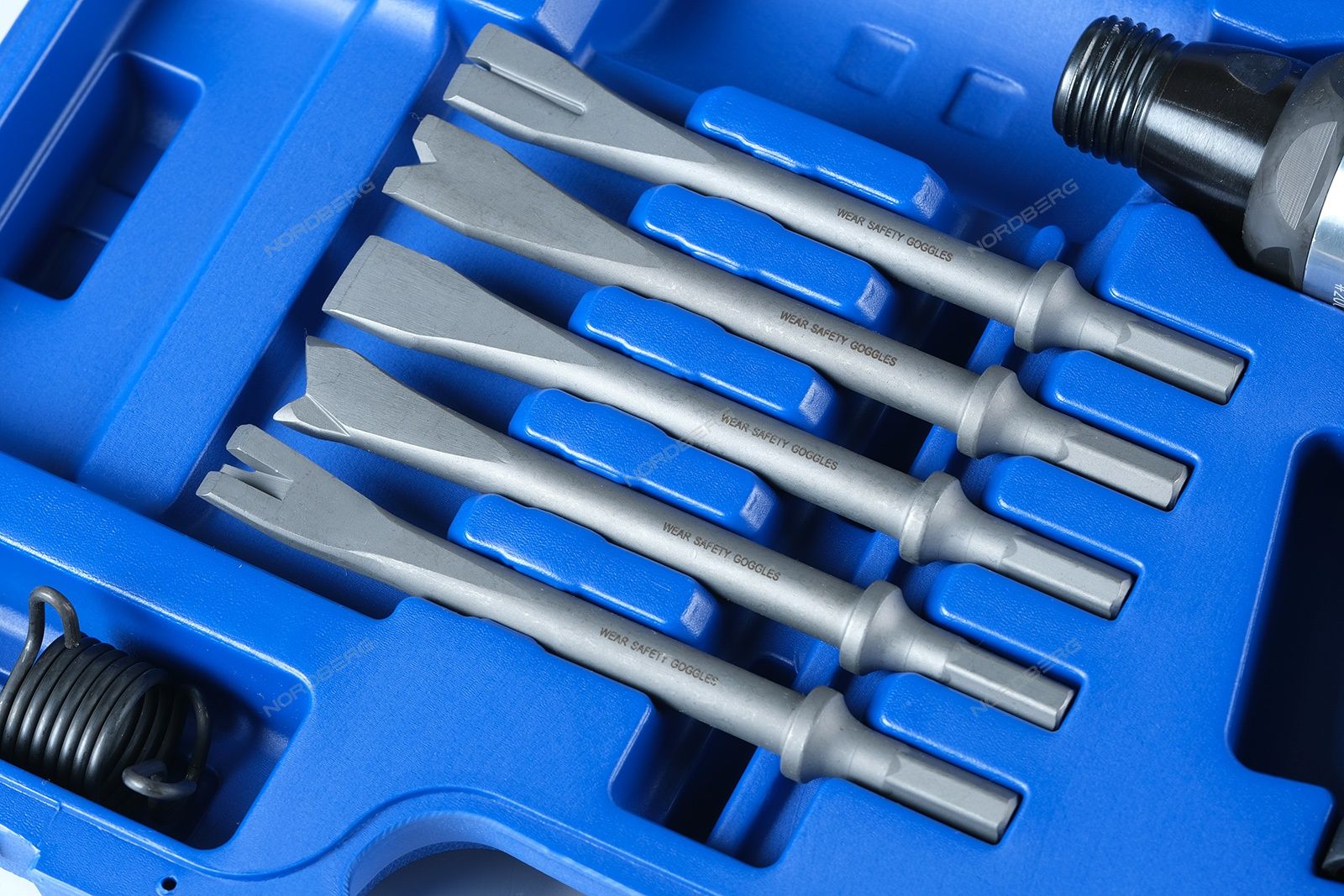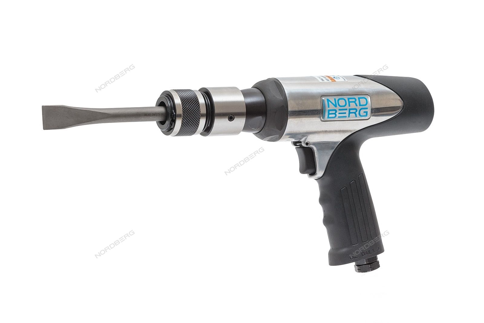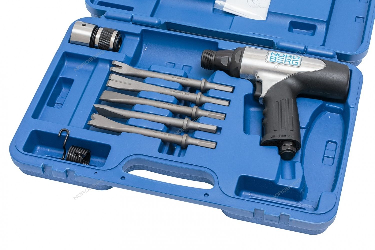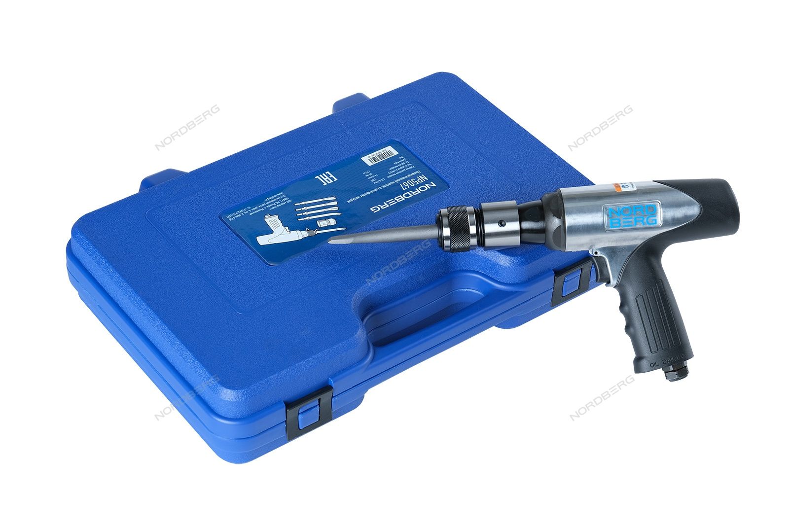 NORDBERG ПНЕВМОЗУБИЛО NP5067 в кейсе + 5 насадок + быстросъемный адаптер (HA67-KIT) применяется для вырубания болтов, панелей кузова и пр.