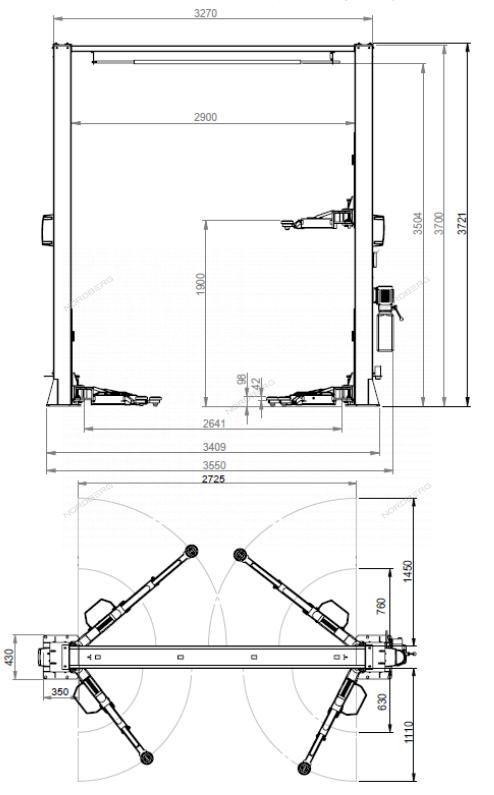 Подъемник 380V 2х стоечный 4т. с верхней синхронизацией (синий), снятие со стопоров с одной колонны NORDBERG N4122HM-4B