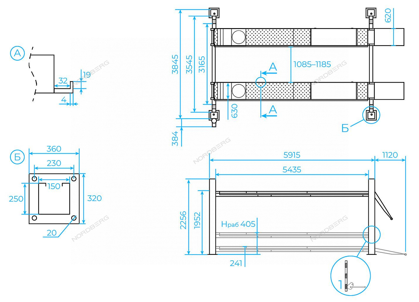 - Опционально поставляется с траверсой пневмогидравлической 3,2 т NORDBERG N433BA
