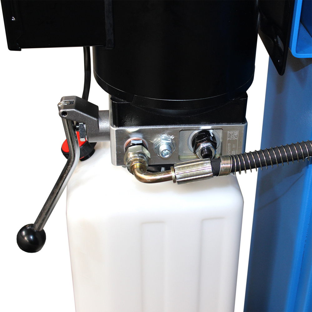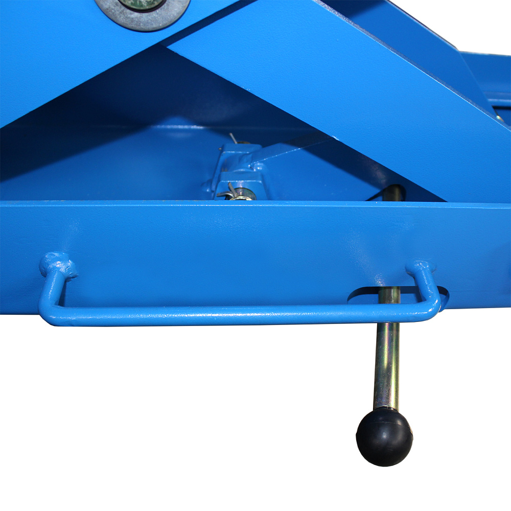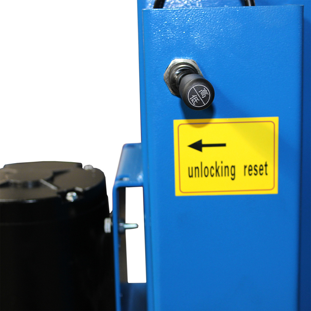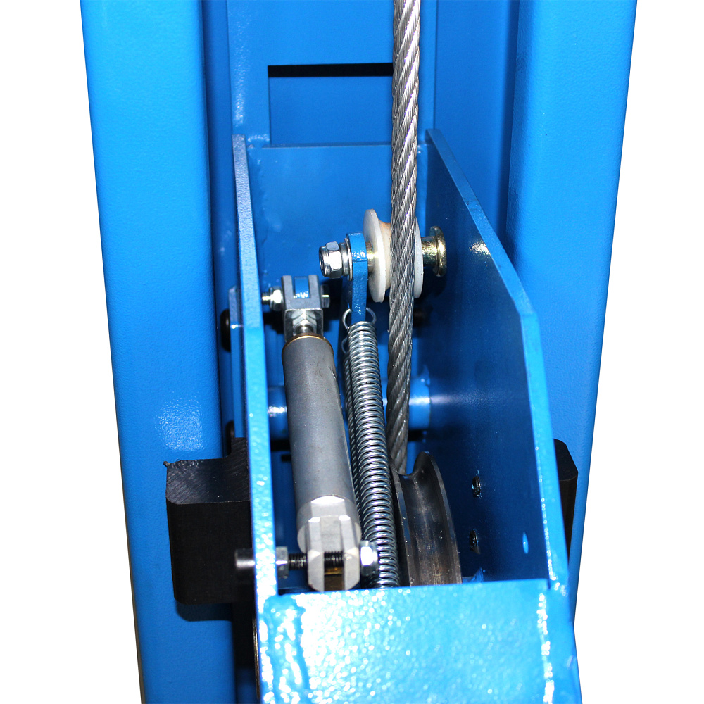 На всех стойках предусмотрен самоблокирующийся замок безопасности, исключающий риск аварийного опускания платформы. Разблокировка осуществляется нажатием на ручку рядом с силовой станцией.