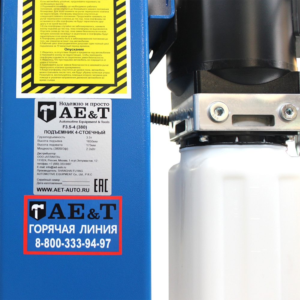 - Перед спуском четырехстоечного подъемника F3.5-4 сначала приподнимите платформы и разблокируйте их, опускайте только после этого шага. Попытка опустить механизм без предварительной разблокировки может привести к выходу из строя системы безопасности.