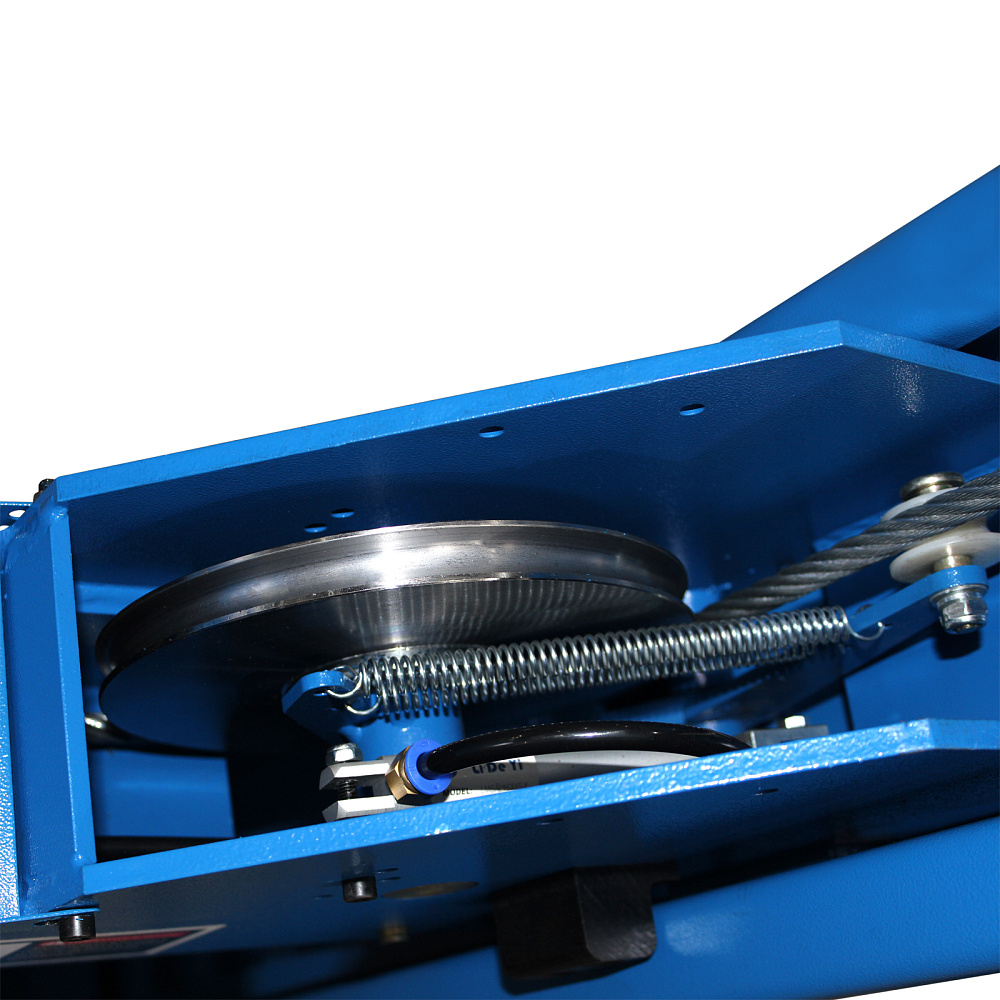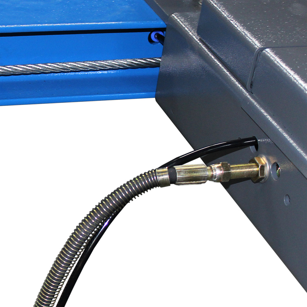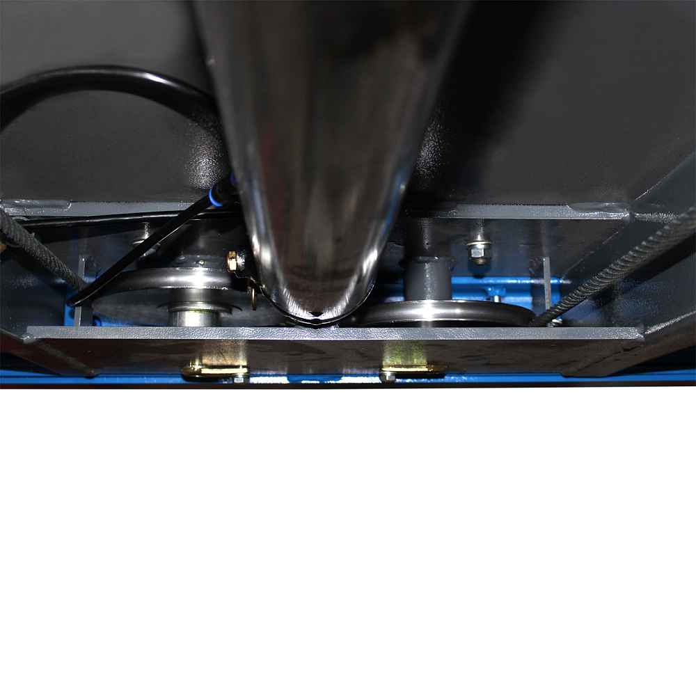Модель приводится в действие мощным электрогидравлическим приводом и системой тросов. Высота подъема до 1 850 мм, длина платформы – 4 990 мм. В комплекте набор скользящих панелей для задних колес, подъемная траверса и пульт управления устройством.