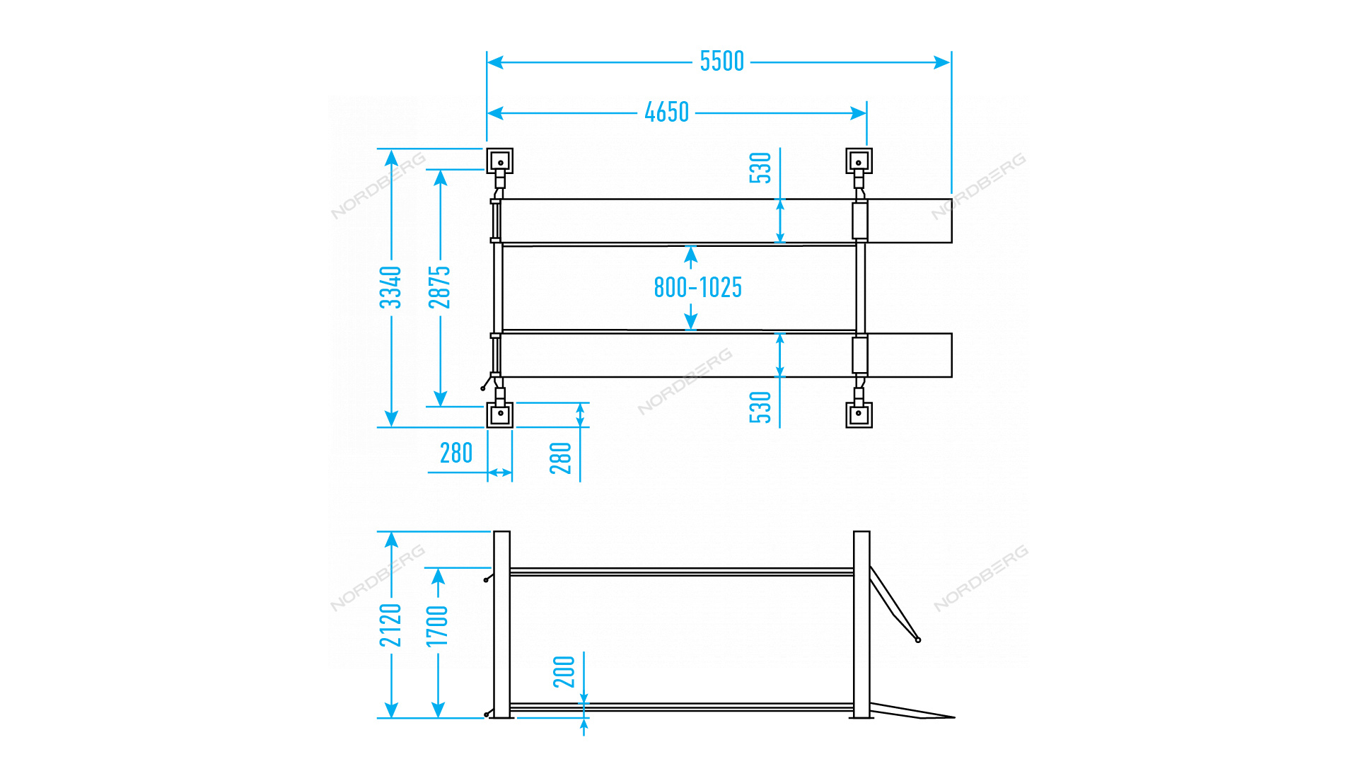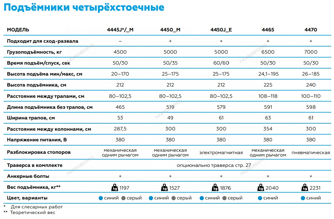 Подъемник четырехстоечный NORDBERG 4445J_M – высококачественное подъемное оборудование для ремонта легковых авто, внедорожников, минивэнов и легких грузовиков