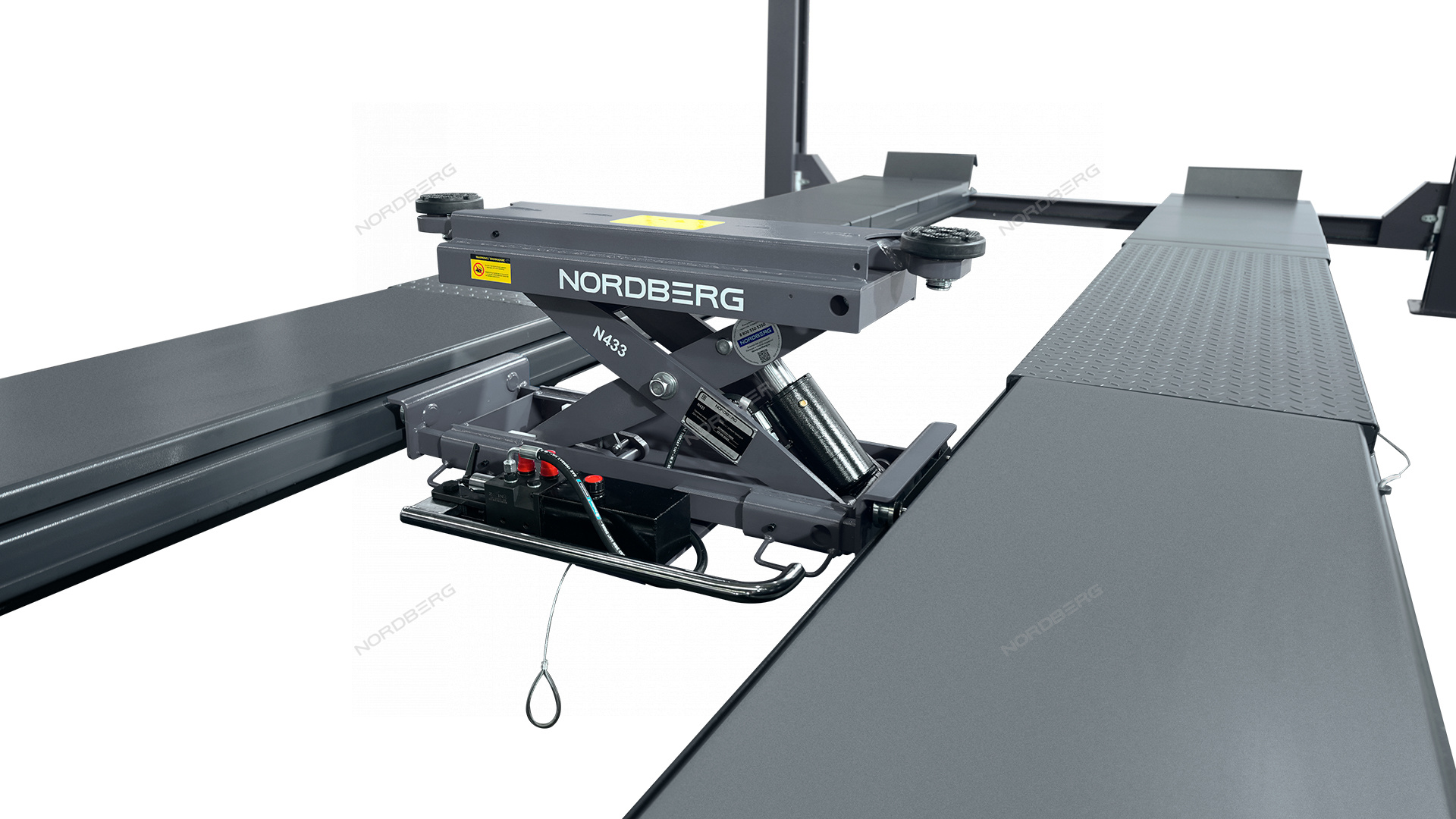 NORDBERG 4450_MG(M) — четырёхстоечный подъёмник грузоподъёмностью 5 тонн для сход-развала с траверсой в комплекте.