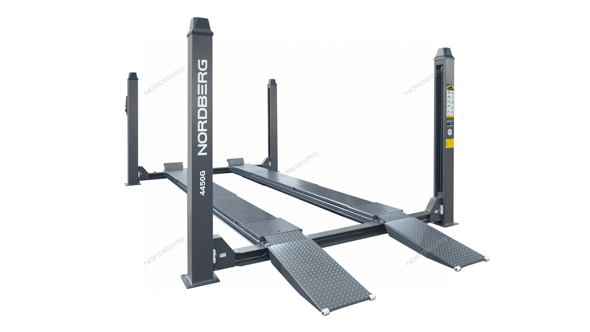 NORDBERG 4450_MG(M) — профессиональный четырёхстоечный подъёмник, сочетающий высокую грузоподъёмность, точность и безопасность. Оптимальное решение для автосервисов, где требуется эффективная и качественная работа с подвеской и ходовой частью.