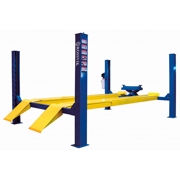 Подъемник четырехстоечный электрогидравлический ROSSVIK V4-4.5 г/п 4,5т, (c ручной траверсой г/п 2 т, без поворотных кругов) для обслуживание легковых автомобилей и легких грузовиков.