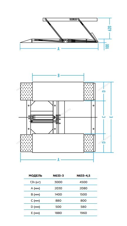 Универсальный подъемник для шиномонтажных мастерских и зоны приемки, может использоваться и как мобильный, без фиксации к полу, так и закрепленным на стационарном посте NORDBERG N633-4.5_220