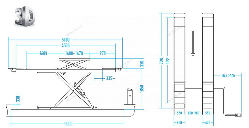 Подъемник ножничный для сход-развала 4,5т, 2 уровня (с аварийным опусканием) NORDBERG N635-4,5B