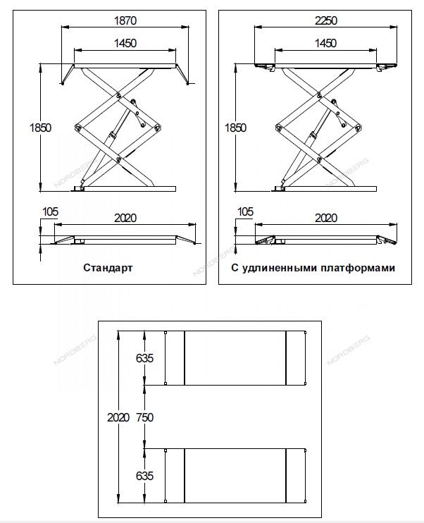 Подъемник ножничный низкопрофильный, максимальная г/п 3 т NORDBERG N631L-3B.