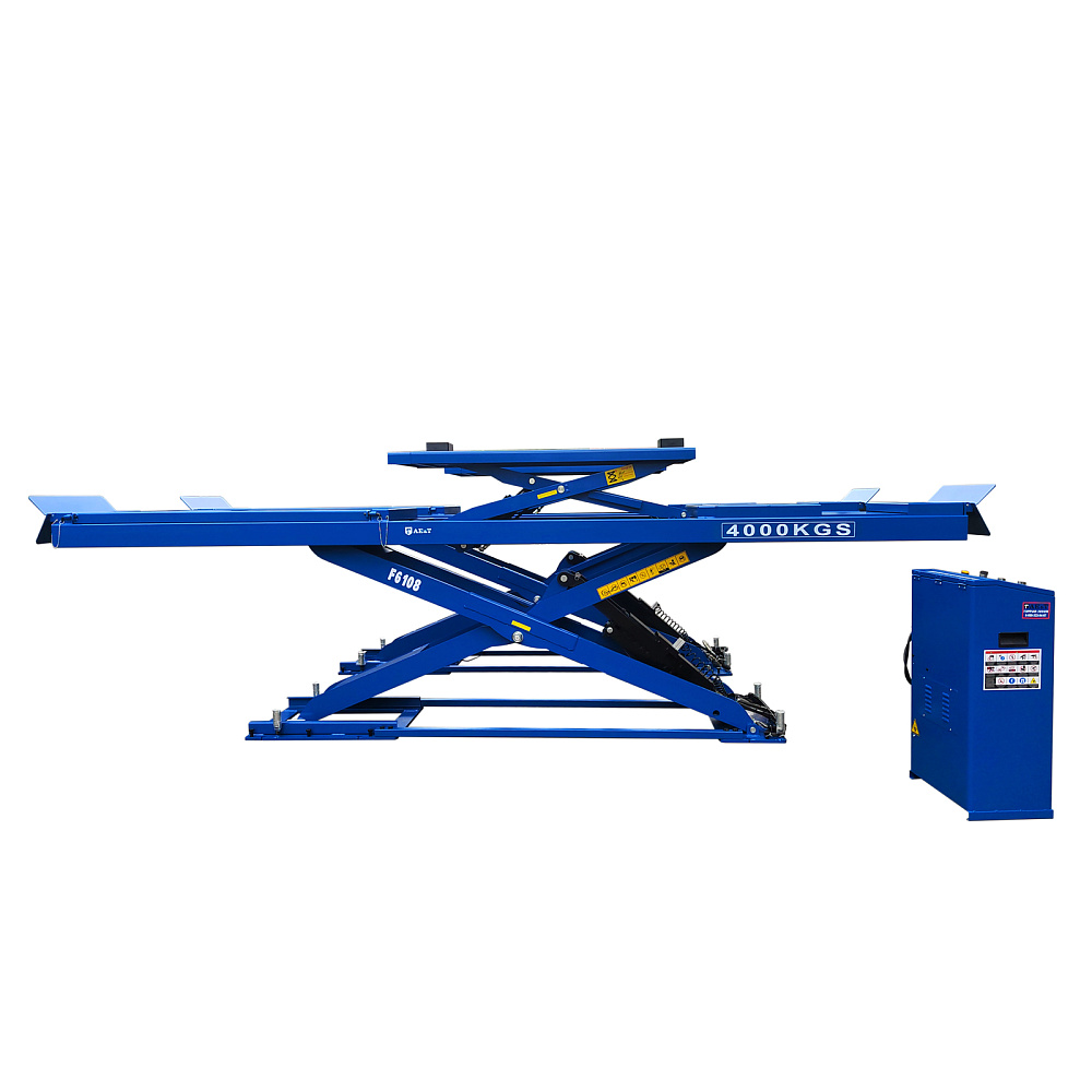 Автомобильный ножничный подъемник F6108 предназначен для подъема и удержания машин весом до 4 000 кг в условиях автосервиса, в закрытых помещениях. Может использоваться в ходе различных операций, связанных с обслуживанием транспортных средств: шиномонтаж, сход-развал, замена элементов тормозной системы, ремонт подвески и т.д.