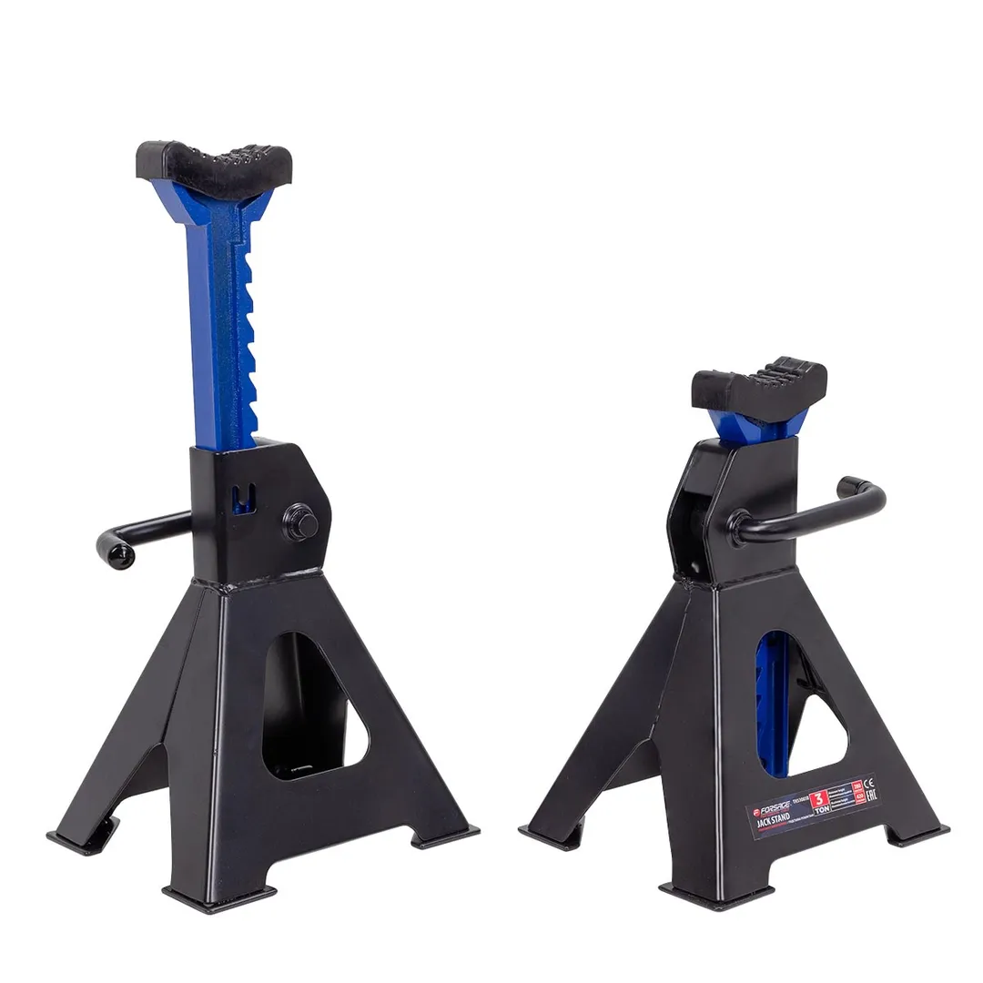 Максимальная нагрузка 3 тонны (2000 кг). Минимальная высота или высота подхвата: 280 мм. Максимальная высота: 410 мм. В комплект входят 2 подставки.