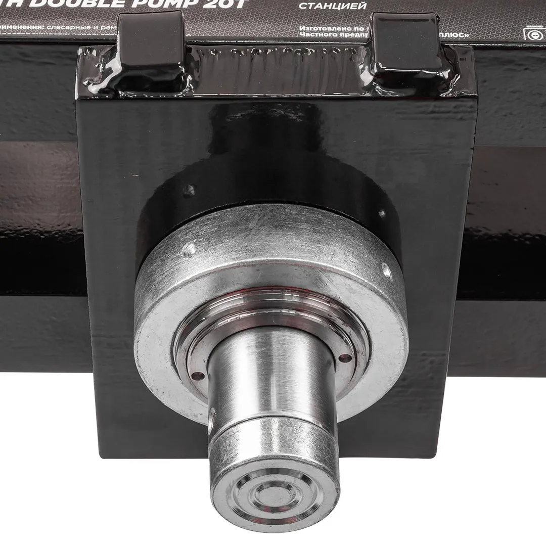 Напольный гидравлический пресс приводится в действие при помощи рукояти. Устойчивое положение модели обеспечивается благодаря поперечным пластинам основания. Отверстия стоек позволяют с легкостью менять высоту стола. Пресс также оснащён манометром, служащим для контролирования давления.