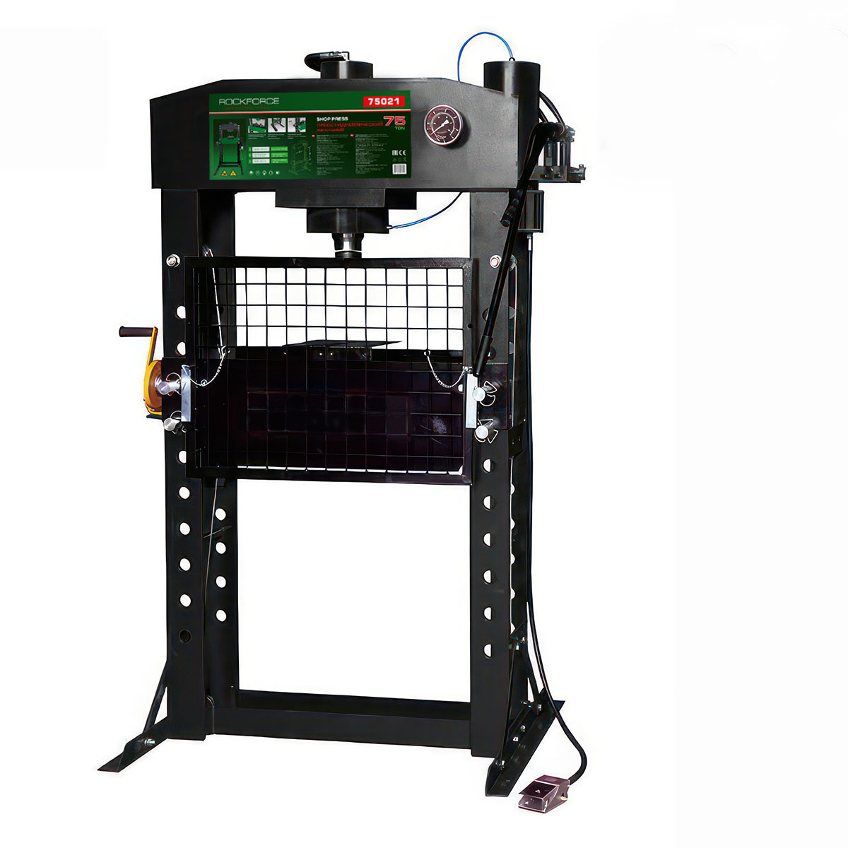 Пресс гидравлический напольный - это мощное и надежное оборудование, предназначенное для выполнения различных видов работ, таких как сжатие, выгибание, прессование и другие гидравлические операции. Этот пресс идеально подходит для использования в автомастерских, промышленных предприятиях и других местах, где требуется мощное оборудование для работы с тяжелыми деталями и материалами. Напольный гидравлический пресс приводится в действие при помощи рукояти либо пневматически, т.е. насос пресса подключается к внешнему компрессору. Устойчивое положение модели обеспечивается благодаря поперечным пластинам основания. Отверстия стоек позволяют с легкостью менять высоту стола. Пресс также оснащён манометром, служащим для контролирования давления. Максимальная нагрузка 75т Рабочая высота 0-900мм Рабочая ширина 800мм Рабочий стол 270х800мм Ход штока 240мм Вес 540кг.