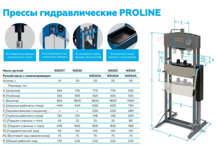 Пресс гидравлический PRO NORDBERG N3550 – незаменимое оборудование в автосервисах, гаражах, позволяющее эффективно и быстро выполнять различные ремонтные работы.