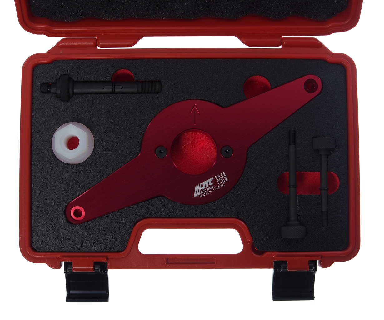 - Предназначен для фиксации звездочек привода цепи ГРМ при установке/демонтаже гасителя колебаний на 4-цилиндровых двигателях 1.8 L, 2.0 L, 4V TFSI (EA888).