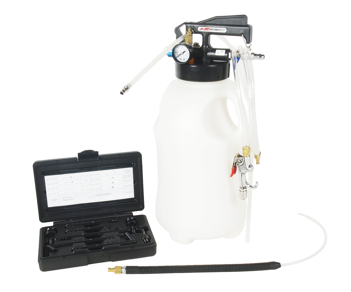 - Приспособление оборудовано предохранительным клапаном с предустановленным значением 43 PSI (3 бар), избыточное давление выпускается автоматически.