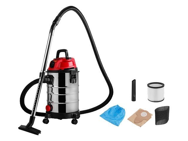 Несколько степеней фильтрации обеспечивается за счет фильтра тонкой очистки (HEPA), который входит в комплект поставки. Возможно также использовать с одноразовыми бумажными мешками. Пылесос также оснащен специальным отверстием для слива воды из бака. А легкий и прочный корпус из нержавеющей стали обеспечит долгий срок службы инструмента. Присутствует функция выдува, а также телескопическая трубка. Обладает раздвижной телескопической трубкой и трехпозиционным переключателем.