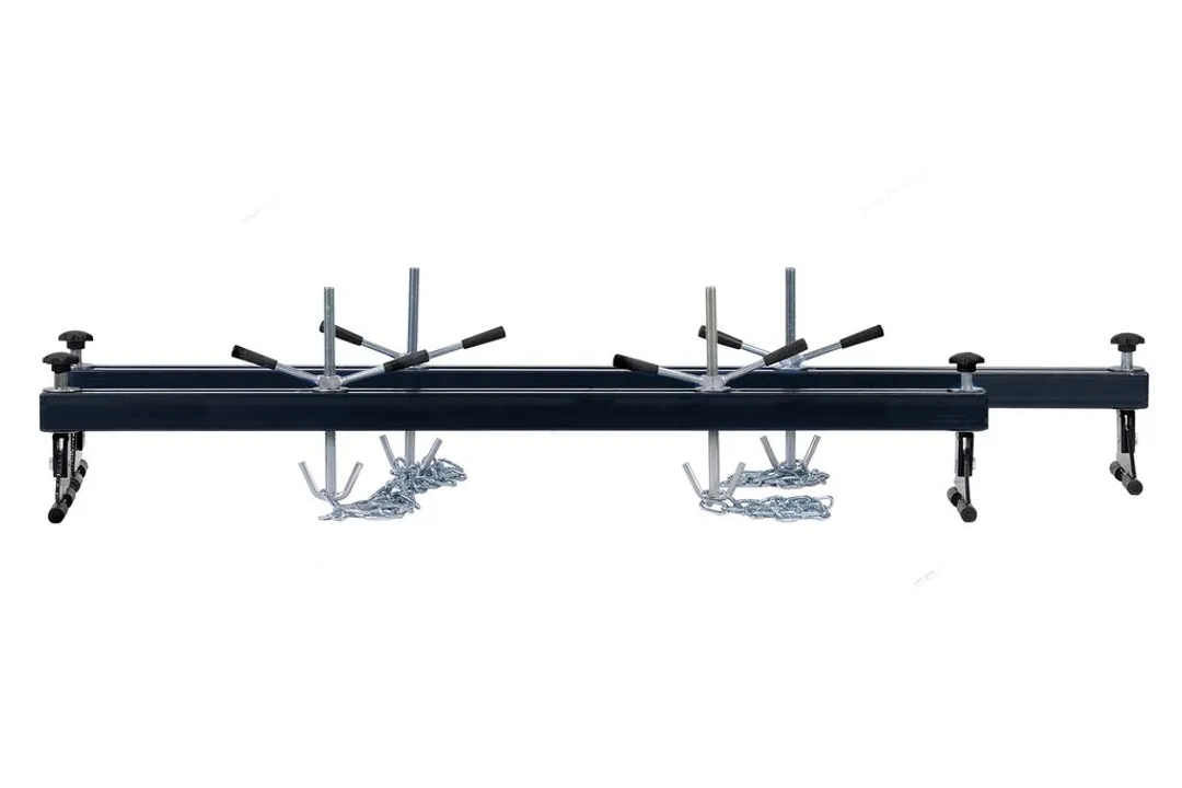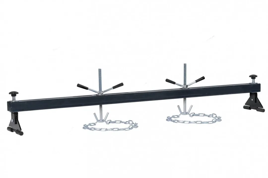 Рама для вывешивания двигателя с двумя захватами - универсальная опорная балка, предназначенная для двигателя и коробки передач, это функциональное приспособление, которое используется для подвешивания и фиксирования в неподвижном положении двигателя во время обслуживающих и слесарных работ. Также рама для снятия двигателя используется для выполнения технических операций с механизмами легковых и грузовых автомобилей. Грузоподьемность 500кг, общая длина 1800мм.