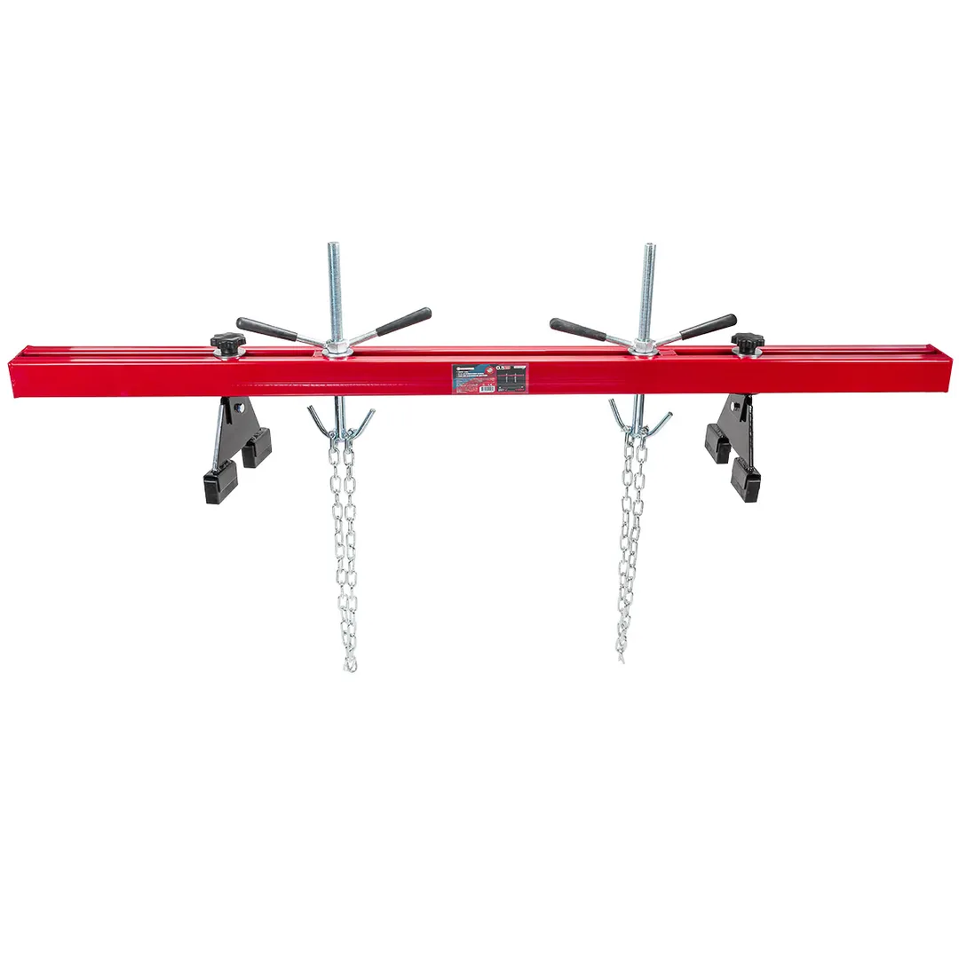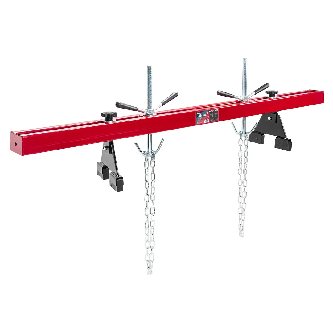 Рама для вывешивания двигателя с двумя захватами - универсальная опорная балка, предназначенная для двигателя и коробки передач, это функциональное приспособление, которое используется для подвешивания и фиксирования в неподвижном положении двигателя во время обслуживающих и слесарных работ. Также рама для снятия двигателя используется для выполнения технических операций с механизмами легковых и грузовых автомобилей. Грузоподьемность 500кг.
