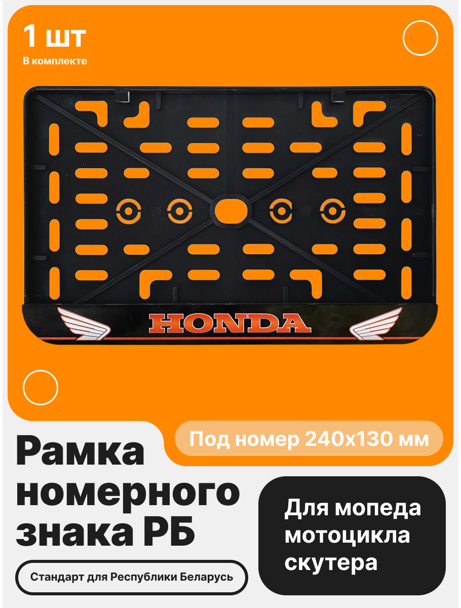 Эта качественная рамка для номерного знака предназначена специально для мотоциклов, соответствуя стандартам Республики Беларусь. Она обеспечивает надежное крепление номерного знака и служит как защитным, так и декоративным элементом. Идеально подходит для всех типов мотоциклов и квадроциклов.