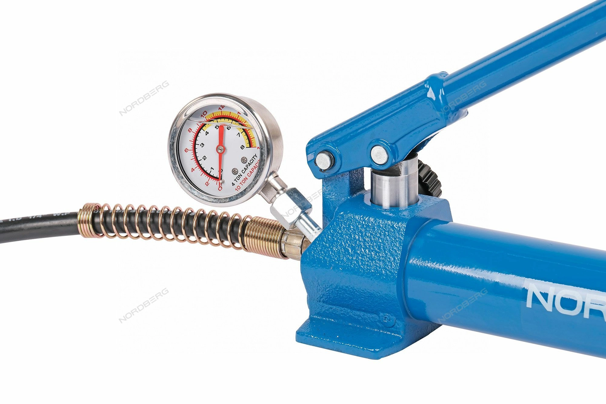 Набор, в который входит гидравлическая растяжка с манометром NORDBERG N3811, включает 15 различных приспособлений для кузовных и рихтовочных работ.
