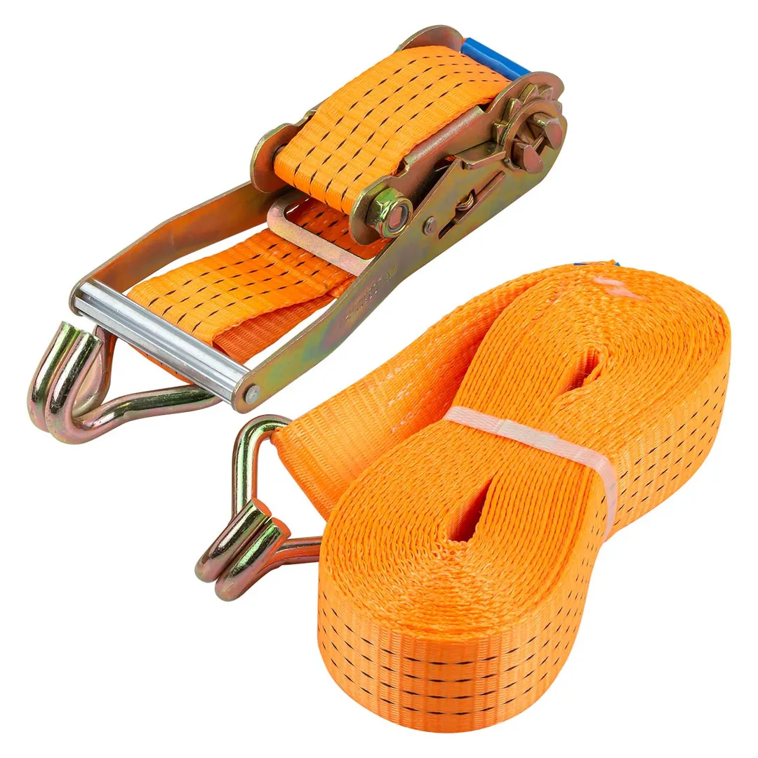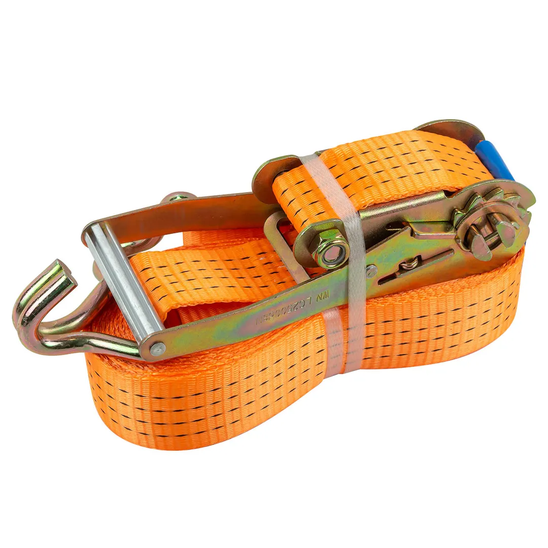 Ремень для крепления грузов с храповым механизмом предназначен для стяжки груза весом до 5 тонн и обеспечивают быстрое и надежное крепление груза. Храповый механизм позволяет затягивать ремень и удерживать его в нужной позиции, предотвращая ослабление ленты, закрепляющей груз, во время движения транспорта, что обеспечивает безопасность участников движения и сохранность перевозимых товаров. Сделан из сверхпрочных полиэфирных нитей, которые обеспечивают высокую прочность и износостойкость. Кроме того, ремень оснащен крюками, которые обеспечивают надежное крепление груза. Длина ремня составляет 10 метров, что позволяет использовать его для крепления груза любого размера и формы.