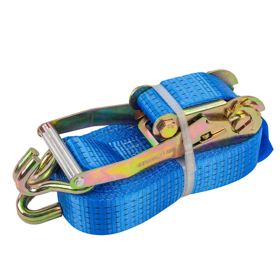 Ремень для крепления грузов с храповым механизмом предназначен для стяжки груза весом до 6 тонн и обеспечивают быстрое и надежное крепление груза. Храповый механизм позволяет затягивать ремень и удерживать его в нужной позиции, предотвращая ослабление ленты, закрепляющей груз, во время движения транспорта, что обеспечивает безопасность участников движения и сохранность перевозимых товаров. Сделан из сверхпрочных полиэфирных нитей, которые обеспечивают высокую прочность и износостойкость. Кроме того, ремень оснащен крюками, которые обеспечивают надежное крепление груза. Длина ремня составляет 10 метров, что позволяет использовать его для крепления груза любого размера и формы.