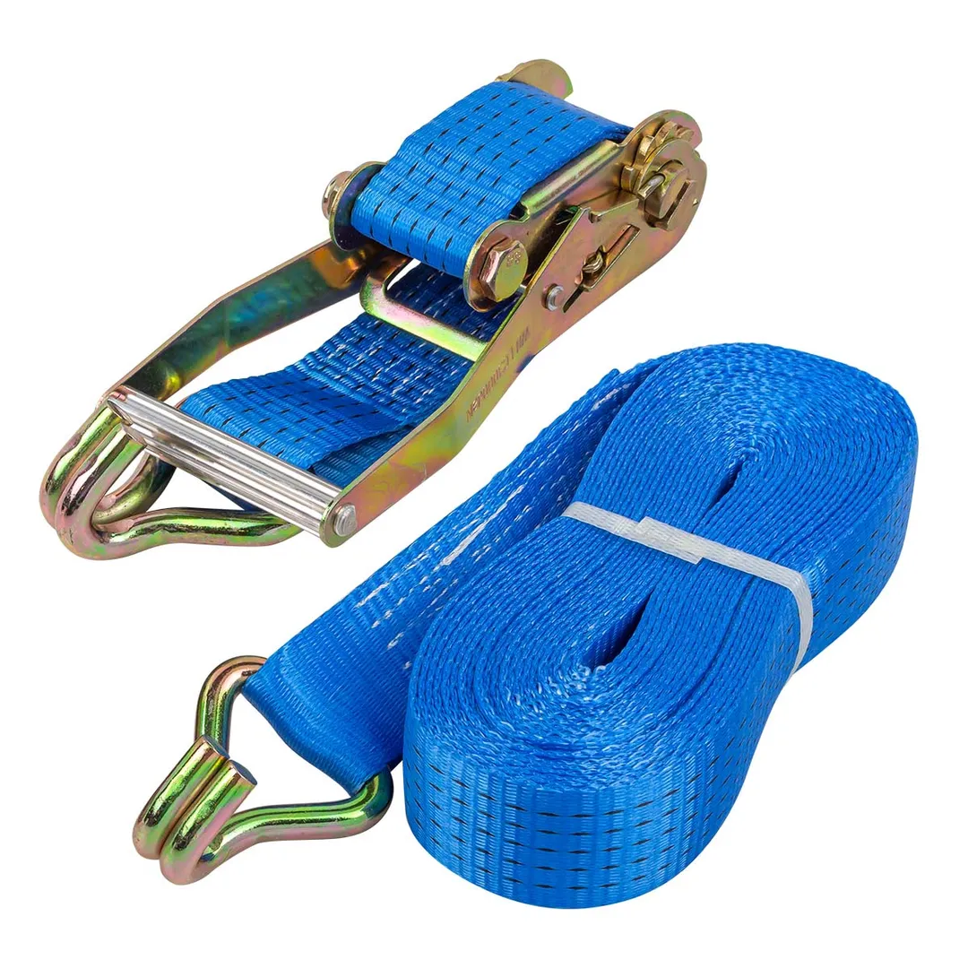 Ремень для крепления грузов с храповым механизмом предназначен для стяжки груза весом до 6 тонн и обеспечивают быстрое и надежное крепление груза. Храповый механизм позволяет затягивать ремень и удерживать его в нужной позиции, предотвращая ослабление ленты, закрепляющей груз, во время движения транспорта, что обеспечивает безопасность участников движения и сохранность перевозимых товаров. Сделан из сверхпрочных полиэфирных нитей, которые обеспечивают высокую прочность и износостойкость. Кроме того, ремень оснащен крюками, которые обеспечивают надежное крепление груза. Длина ремня составляет 10 метров, что позволяет использовать его для крепления груза любого размера и формы.