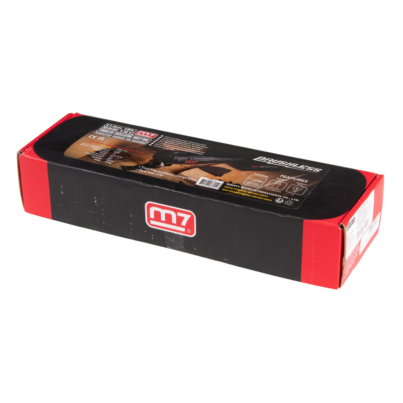 11 000 кол./мин Частота колебаний максимальная 18 000 кол./мин Угол колебаний 3,6 градусов Регулятор скорости Есть Подсветка рабочей зоны Есть Бесключевая система смены оснастки Есть Функция плавного пуска Есть Тип двигателя Бесщёточный (BRUSHLESS MOTOR) Аккумулятор (не входит в комплект) 18 В Li-Ion 2.5 Ач (DB-1825) или 18 В Li-Ion 5.0 Ач (DB-1850) Материалы Сталь, пластик, резинопластик Упаковка Картонный короб в фирменном стиле бренда MIGHTY SEVEN Размеры в упаковке 375×115×75 мм Вес 1,302 кг