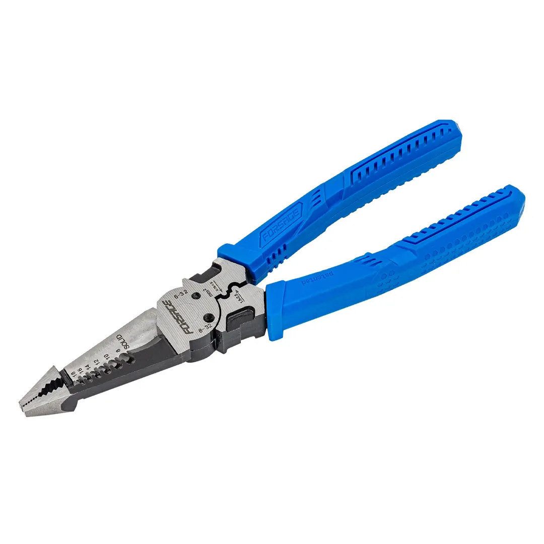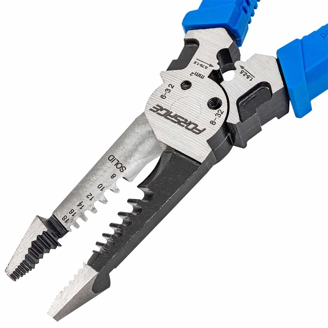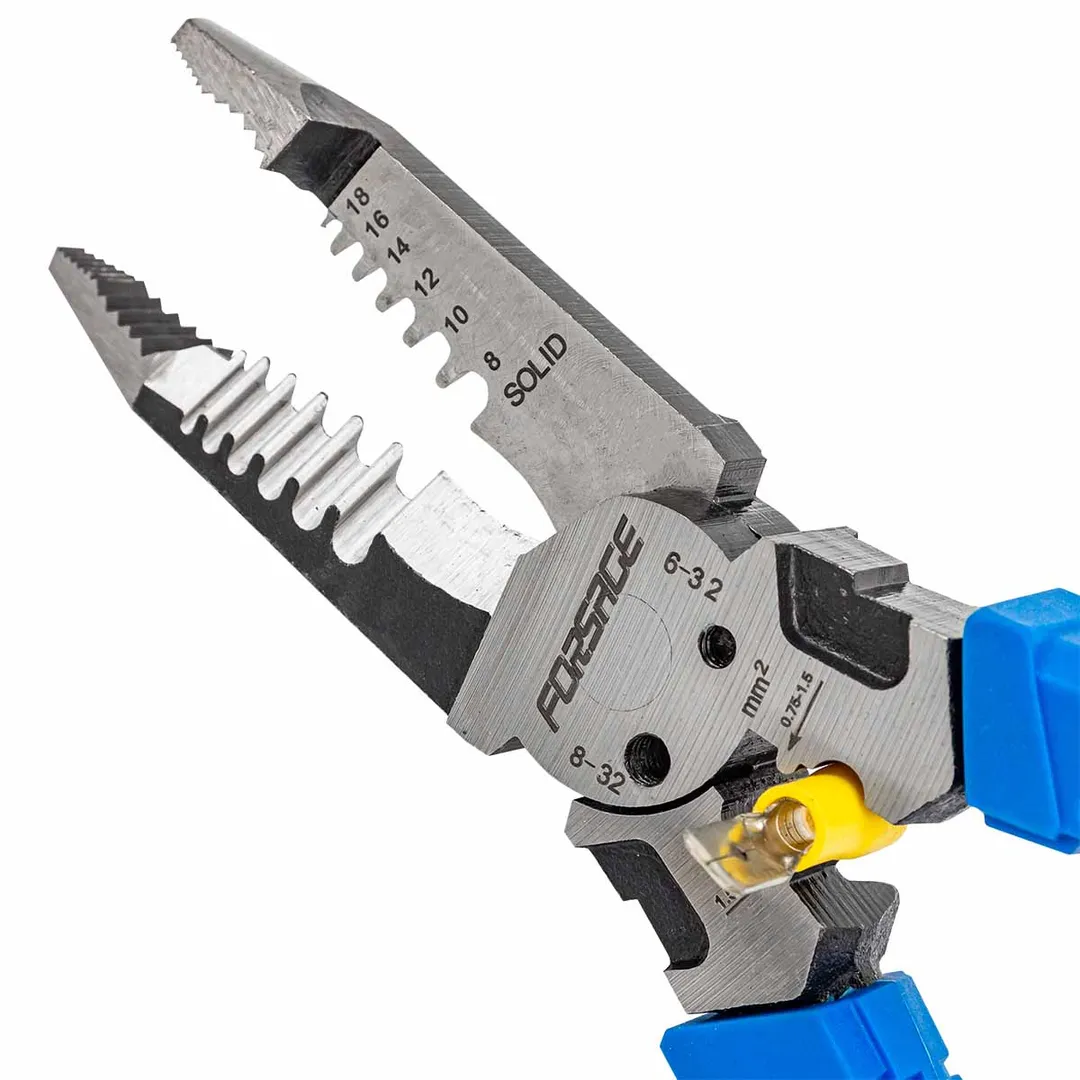 Сьёмник изоляции 200мм с эргономичными рукоятками могут использоваться для работы с проводами, кабелями и.т.д. Съёмник имеет удобные прорезиненные рукоятки, которые обеспечивают комфортный захват и предотвращают скольжение во время работы.Сьёмник предназначен для сьема изоляции сечения проводов диаметров 1-1,3-1,6-2-2,6мм (18-16-14-12-10AWG). Для этого в сьемнике предусмотрены специальные ложбины для провода, которые обеспечивают удобство работы. также обладает функцией зажима клемм 0,75-1,5мм² и 1,5-2,5мм² и специальными отверстиями для перекусывания гвоздей, проволоки и т.д. Кроме этого, благодаря рифлению на внутренней поверхности сьемник может использоваться в качестве плоскогубцев для захвата, манипулирования, удержания и поворота различных объектов и материалов. А благодаря закруглённому концу сьемник можно применять в качестве плоскогубцев в труднодоступных местах для более тонких работ.