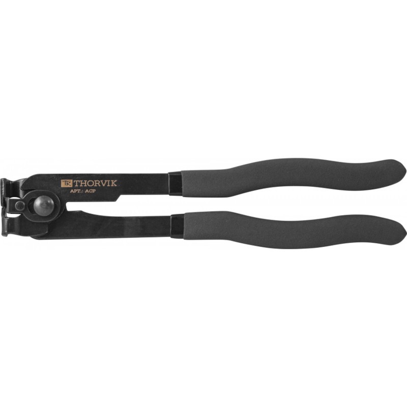 Инструмент применяется для снятия пружинных хомутов систем охлаждения в сложных для доступа местах. Захваты с V-образными канавками, лучше всего подходящими для удержания плоских хомутов.