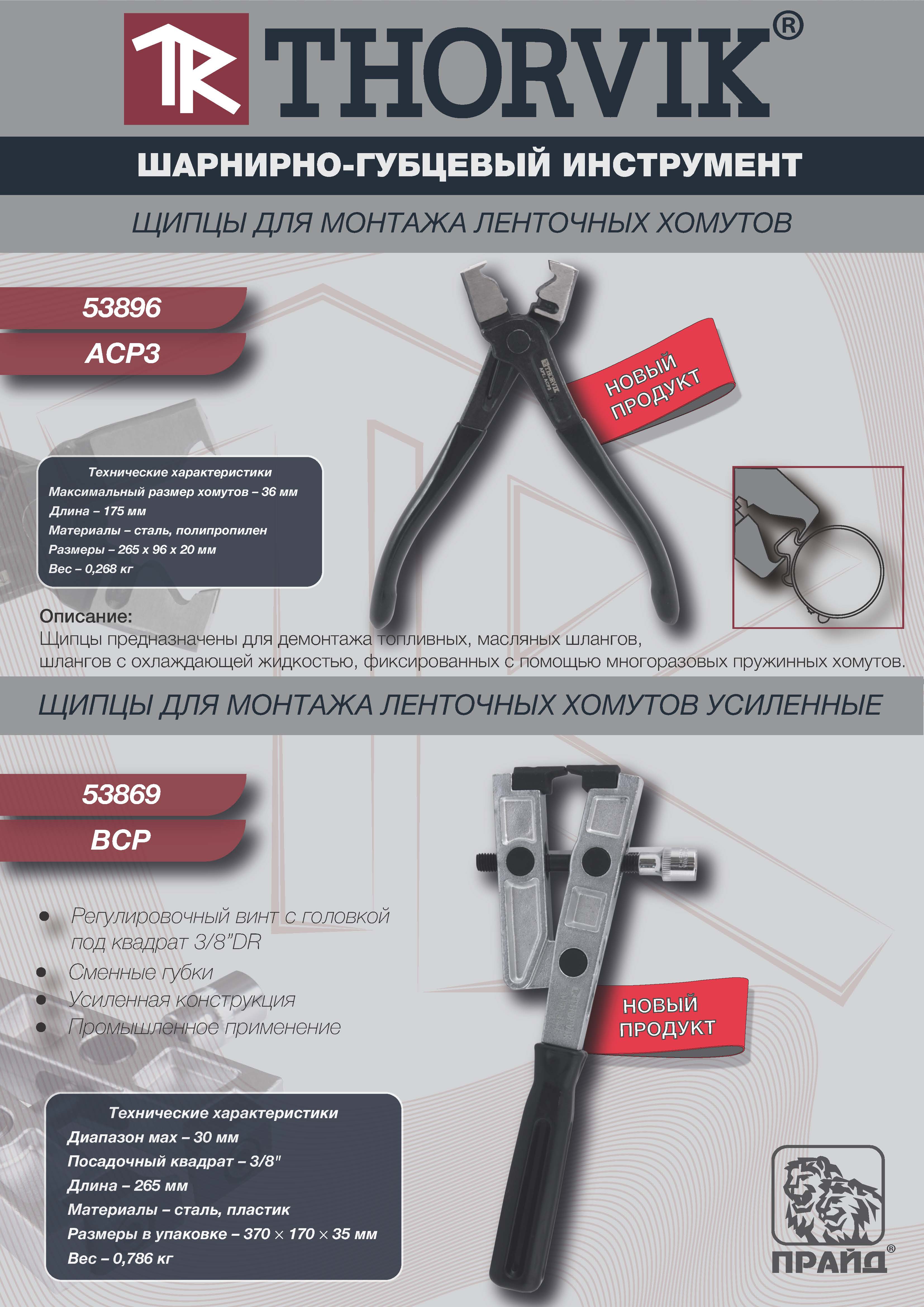 Щипцы для монтажа ленточных хомутов усиленные Thorvik, применяются для установки новых "замковых" хомутов пыльников ШРУСов, изготовленных из нержавеющей стали, при монтаже которых рекомендовано дозированное воздействие на соединение. Правильно использовать изделие в сочетании с динамометрическим ключом с приводом 3/8"DR.