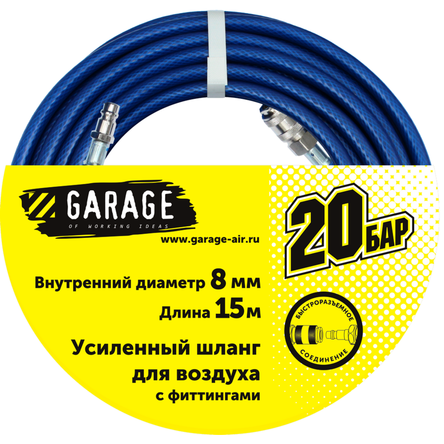 Шланг Garage 8144990 служит удлинителем между компрессором и рабочим инструментом. Достаточная длина оснастки позволяет осуществлять работы на нужном расстоянии от компрессора.