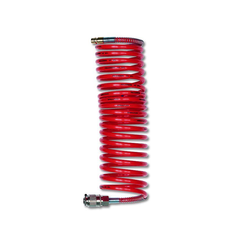 Длина шланга позволяет осуществлять работы в удаленном от компрессора месте. Спиральное исполнение предотвращает перегибы и увеличивает комфортность при использовании и хранении.