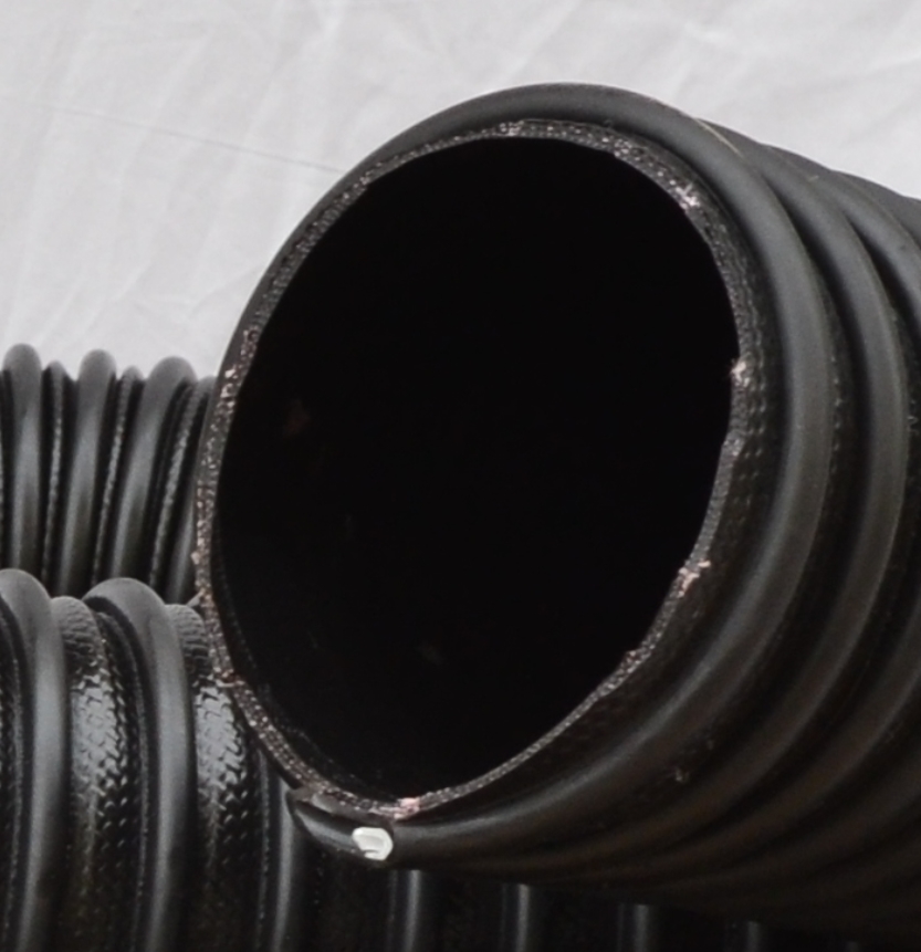 Шланг для отвода выхлопных газов TG-210205C из вулканизированной резины рабочей длиной 5 метров. Гофрированный, стойкий к заломам и перегибам. Рабочая температура до 200°C.