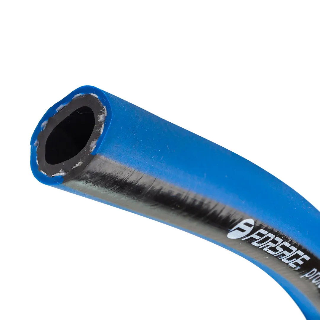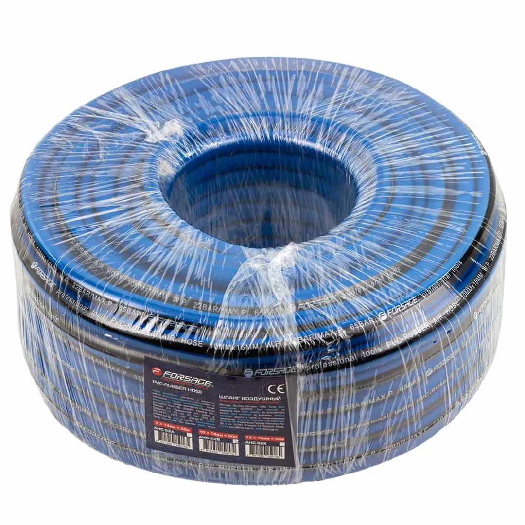 Шланг для компрессора резиновый воздушный армированный 10 мм x 16 мм используется для подключения пневмоинструмента к компрессору при работе с сжатым воздухом. Воздушный шланг произведен из армированной резины, устойчивой к изнашиванию. Полимерная оболочка выдерживает многократное применение без разрывов, за счет чего обеспечиваются герметичность и длительная эксплуатация. Внутренний диаметр 10 мм и внешний диаметр 16 мм. Также благодаря армированию изделие выдерживает высокие нагрузки по давлению сжатого воздуха до 60 бар, рабочее давление 20 бар. Толщина стенки шланга составляет 3 мм, что придает ему высокую механическую прочность и долговечность. Шланг может храниться и эксплуатироваться при температурах от -30 до +70 градусов Цельсия.