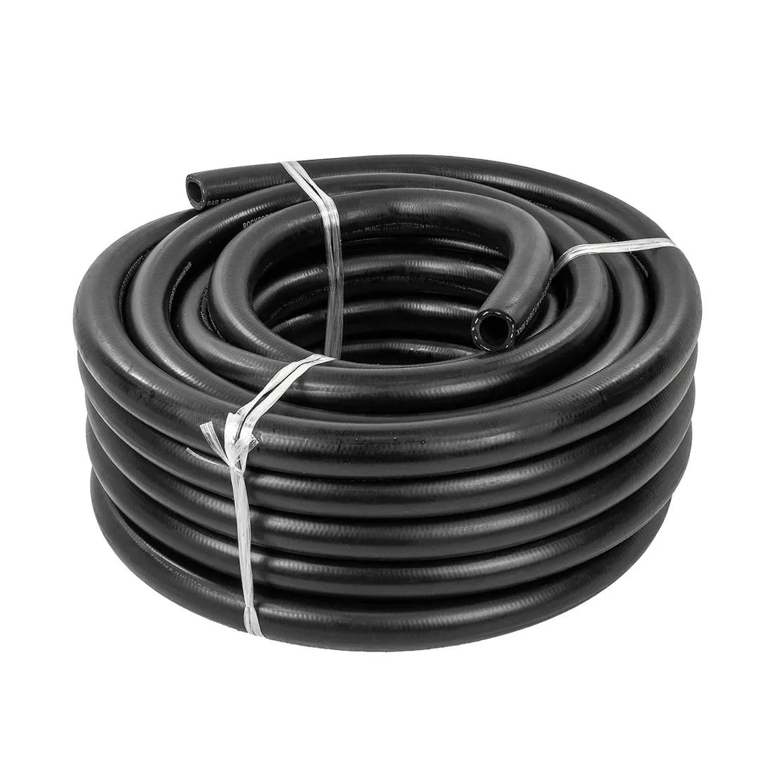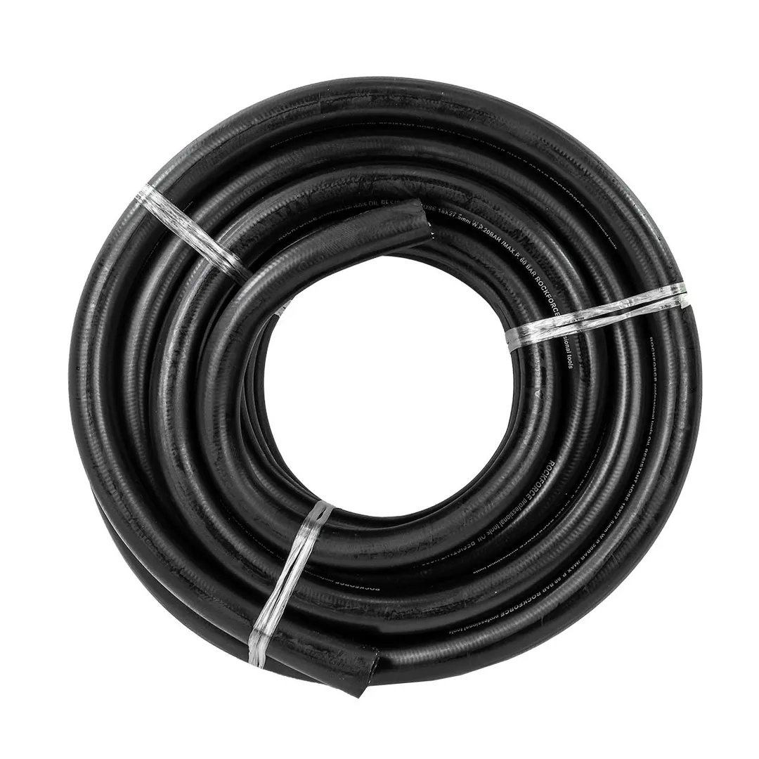 Шланг резиновый армированный бензо-маслостойкий, размером 18 х 27.5 мм и длиной 15 метров, обладает повышенной гибкостью и сопротивлением к излому. Армирован нейлоновой нитью. Этот шланг предназначен для использования в условиях, где требуется перенос бензина, масла или других нефтепродуктов. Шланг имеет рабочее давление до 20 бар и максимальное давление до 60 бар. Гибкий при низких температурах. Он способен выдерживать температуры от -30°C до +70°C, что делает его пригодным для использования в широком диапазоне климатических условий. Данный шланг соответствует стандарту DIN20018, что подтверждает его высокое качество и соответствие нормам безопасности.