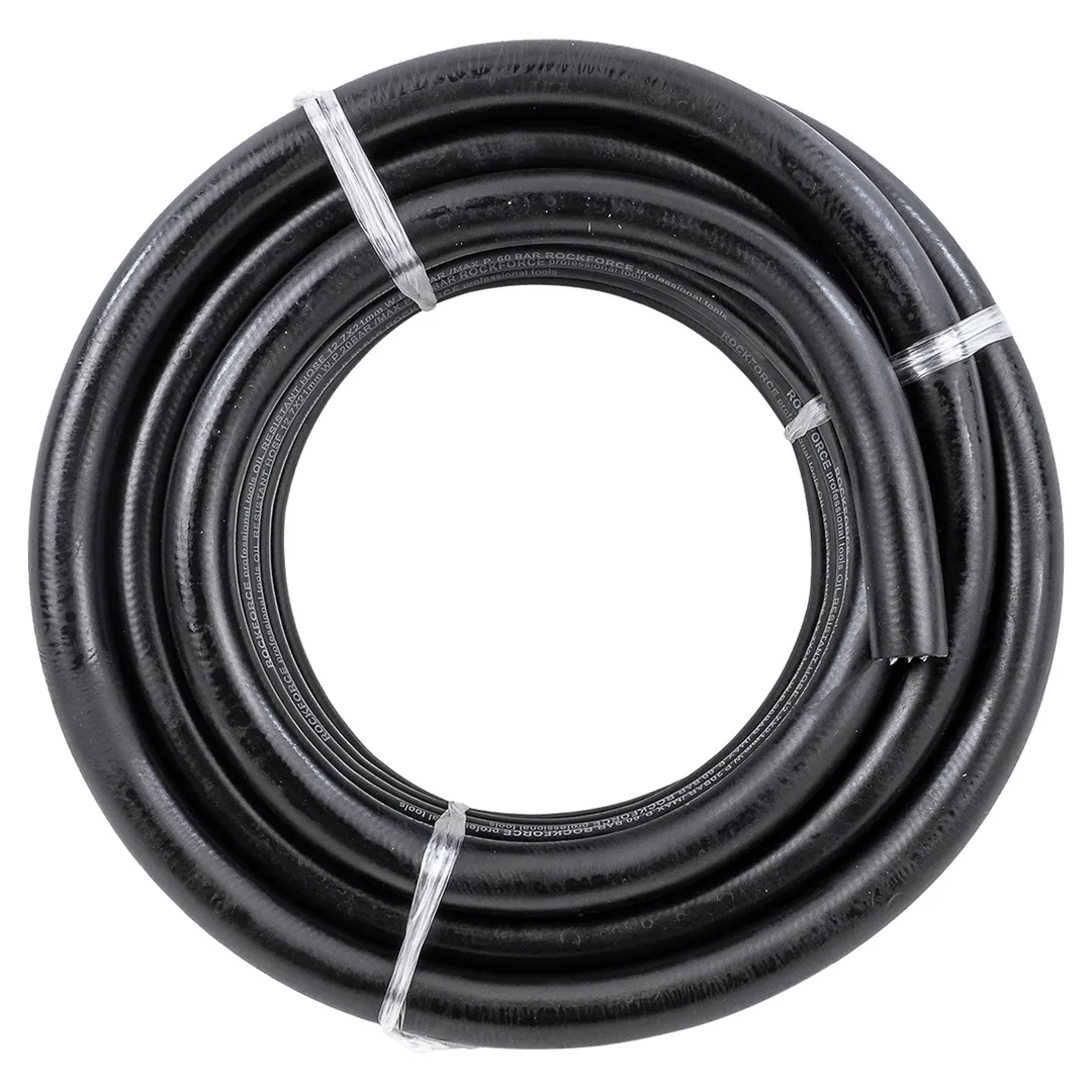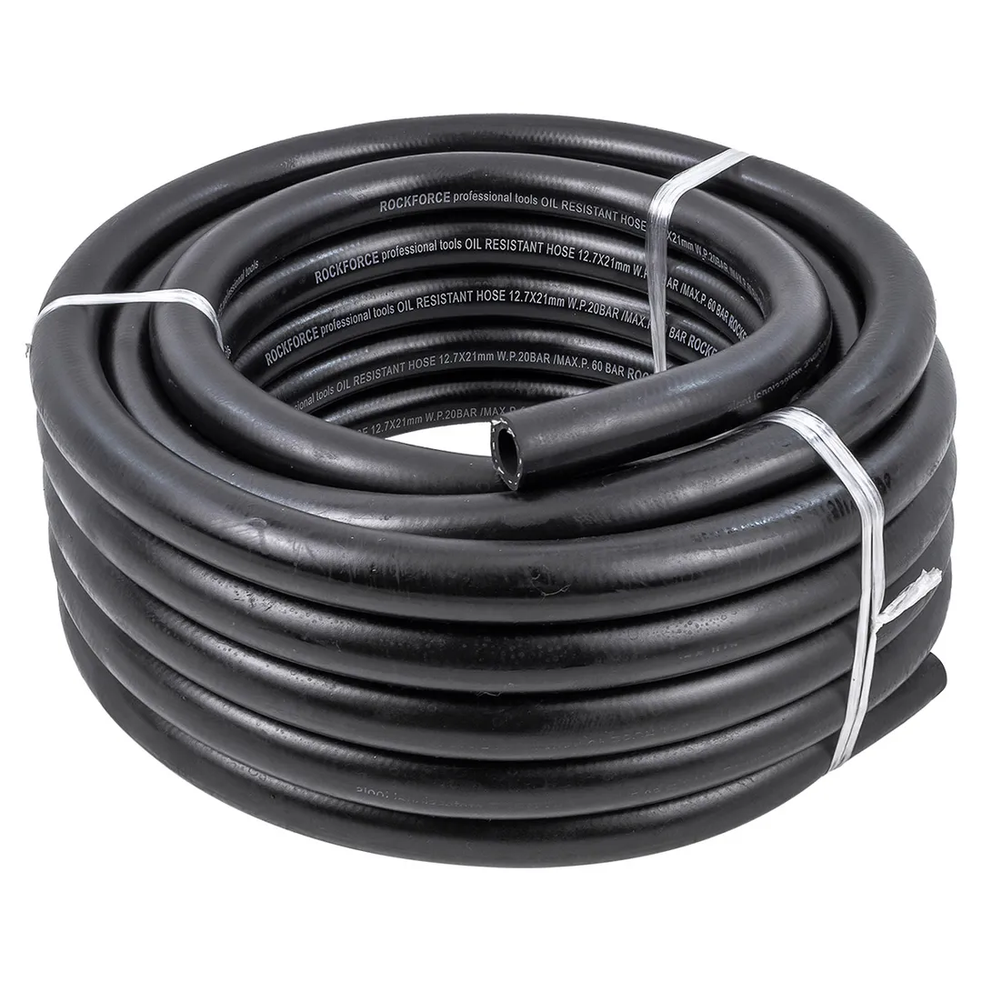 Шланг резиновый армированный бензо-маслостойкий, размером 12,7 х 20 мм и длиной 10 метров, обладает повышенной гибкостью и сопротивлением к излому. Армирован нейлоновой нитью. Этот шланг предназначен для использования в условиях, где требуется перенос бензина, масла или других нефтепродуктов. Шланг имеет рабочее давление до 20 бар и максимальное давление до 60 бар. Гибкий при низких температурах. Он способен выдерживать температуры от -30°C до +70°C, что делает его пригодным для использования в широком диапазоне климатических условий. Данный шланг соответствует стандарту DIN20018, что подтверждает его высокое качество и соответствие нормам безопасности.