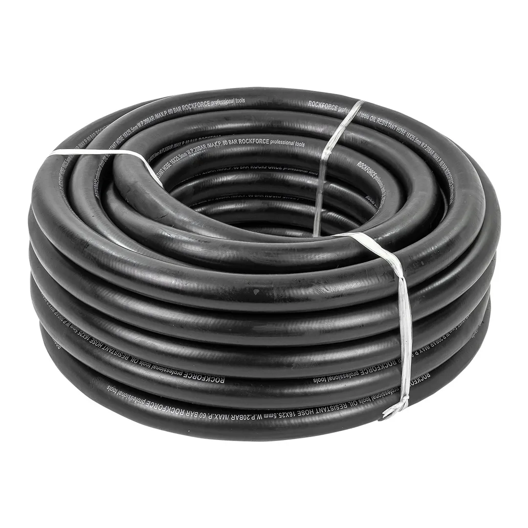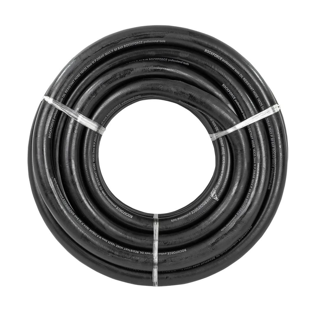Шланг резиновый армированный бензо-маслостойкий, размером 16 х 25.5 мм и длиной 15 метров, обладает повышенной гибкостью и сопротивлением к излому. Армирован нейлоновой нитью. Этот шланг предназначен для использования в условиях, где требуется перенос бензина, масла или других нефтепродуктов. Шланг имеет рабочее давление до 20 бар и максимальное давление до 60 бар. Гибкий при низких температурах. Он способен выдерживать температуры от -30°C до +70°C, что делает его пригодным для использования в широком диапазоне климатических условий. Данный шланг соответствует стандарту DIN20018, что подтверждает его высокое качество и соответствие нормам безопасности.