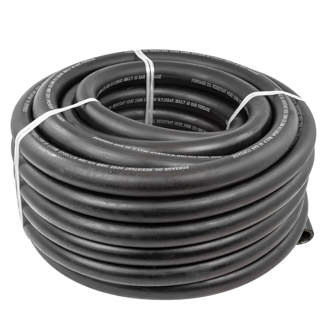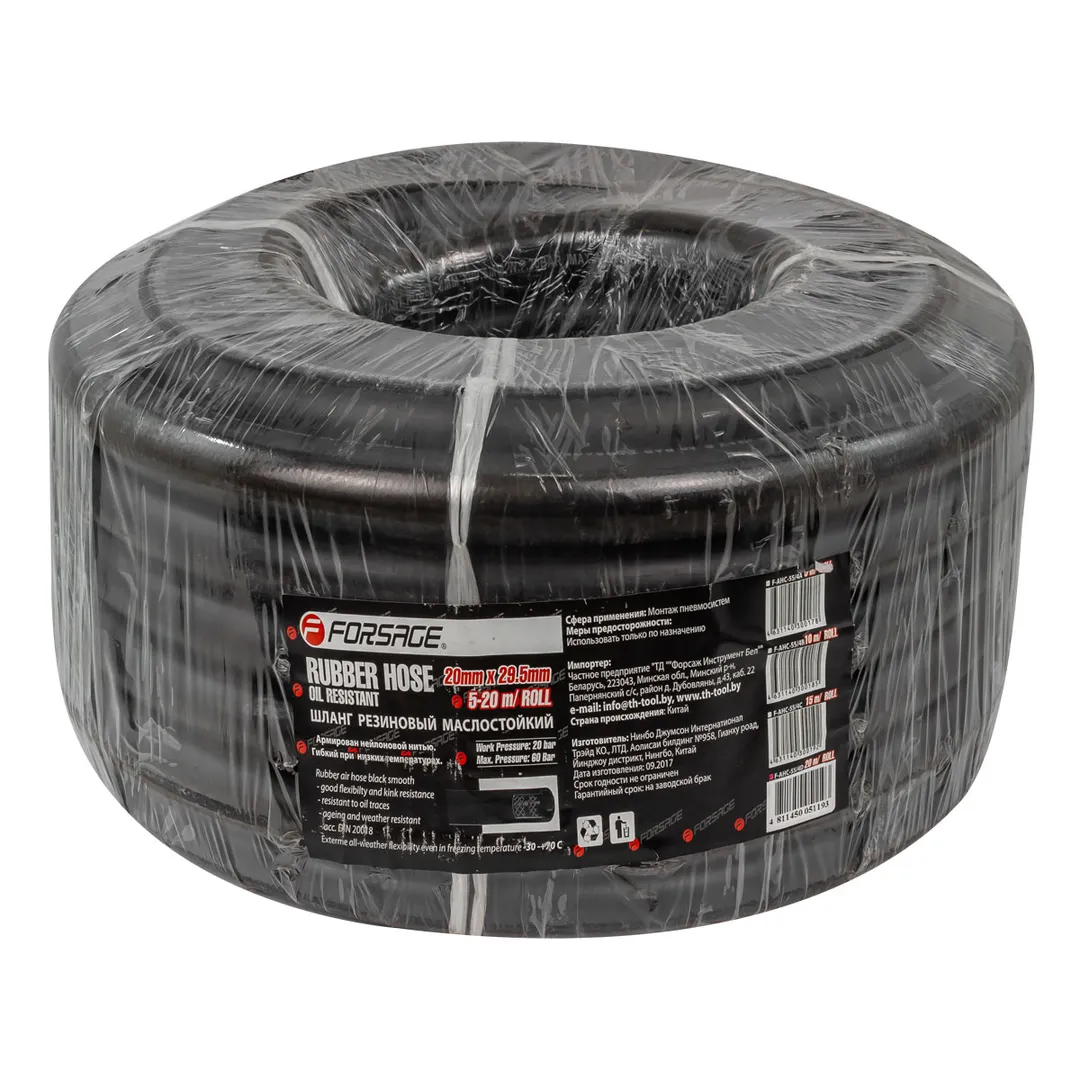 Шланг резиновый армированный бензо-маслостойкий, размером 20 х 29.5 мм и длиной 20 метров, обладает повышенной гибкостью и сопротивлением к излому. Армирован нейлоновой нитью. Этот шланг предназначен для использования в условиях, где требуется перенос бензина, масла или других нефтепродуктов. Шланг имеет рабочее давление до 20 бар и максимальное давление до 60 бар. Гибкий при низких температурах. Он способен выдерживать температуры от -30°C до +70°C, что делает его пригодным для использования в широком диапазоне климатических условий. Данный шланг соответствует стандарту DIN20018, что подтверждает его высокое качество и соответствие нормам безопасности.