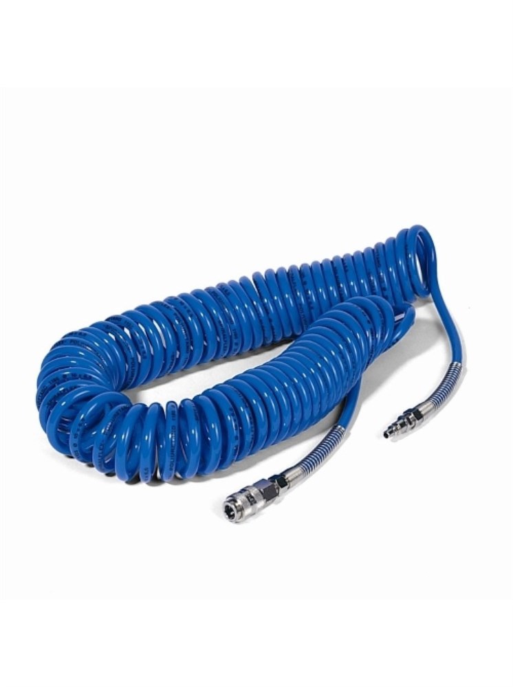 Длина шланга позволяет осуществлять работы в удаленном от компрессора месте. Спиральное исполнение предотвращает перегибы и увеличивает удобство при использовании и хранении.