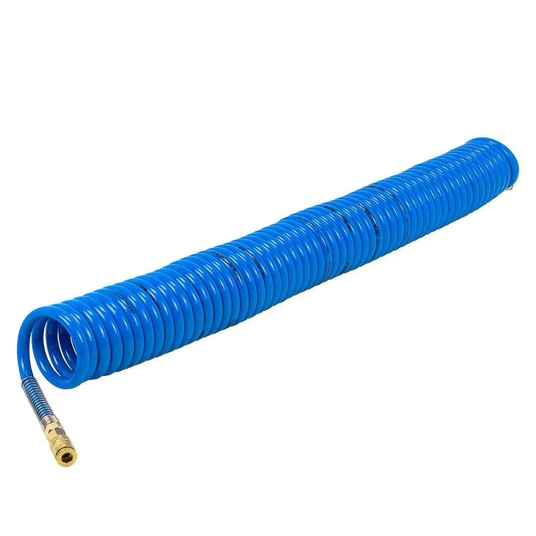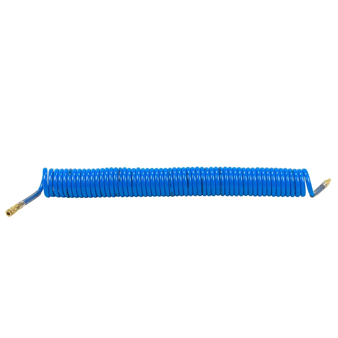 Шланг пневматический витой полиуретановый применяется для подачи воздуха от компрессора к пневматическому инструменту. Изготовлен из полиуретана, отличается прочностью и удобством эксплуатации. Спиральное исполнение шланга предотвращает его перегибы. Шланг оснащён штуцером рапид мама с одной стороны и рапид папа с другой.