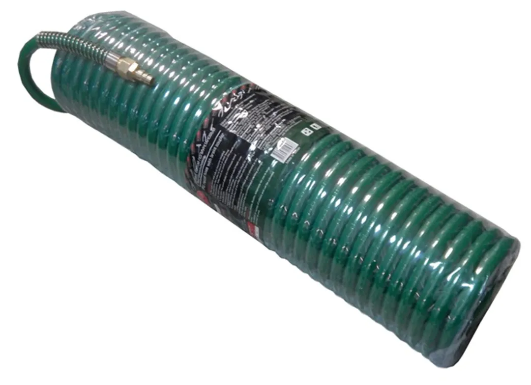 Шланг пневматический витой полиуретановый применяется для подачи воздуха от компрессора к пневматическому инструменту. Изготовлен из полиуретана, отличается прочностью и удобством эксплуатации. Спиральное исполнение шланга предотвращает его перегибы. Шланг оснащён штуцером рапид мама с одной стороны и рапид папа с другой.