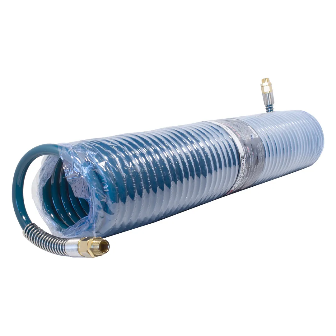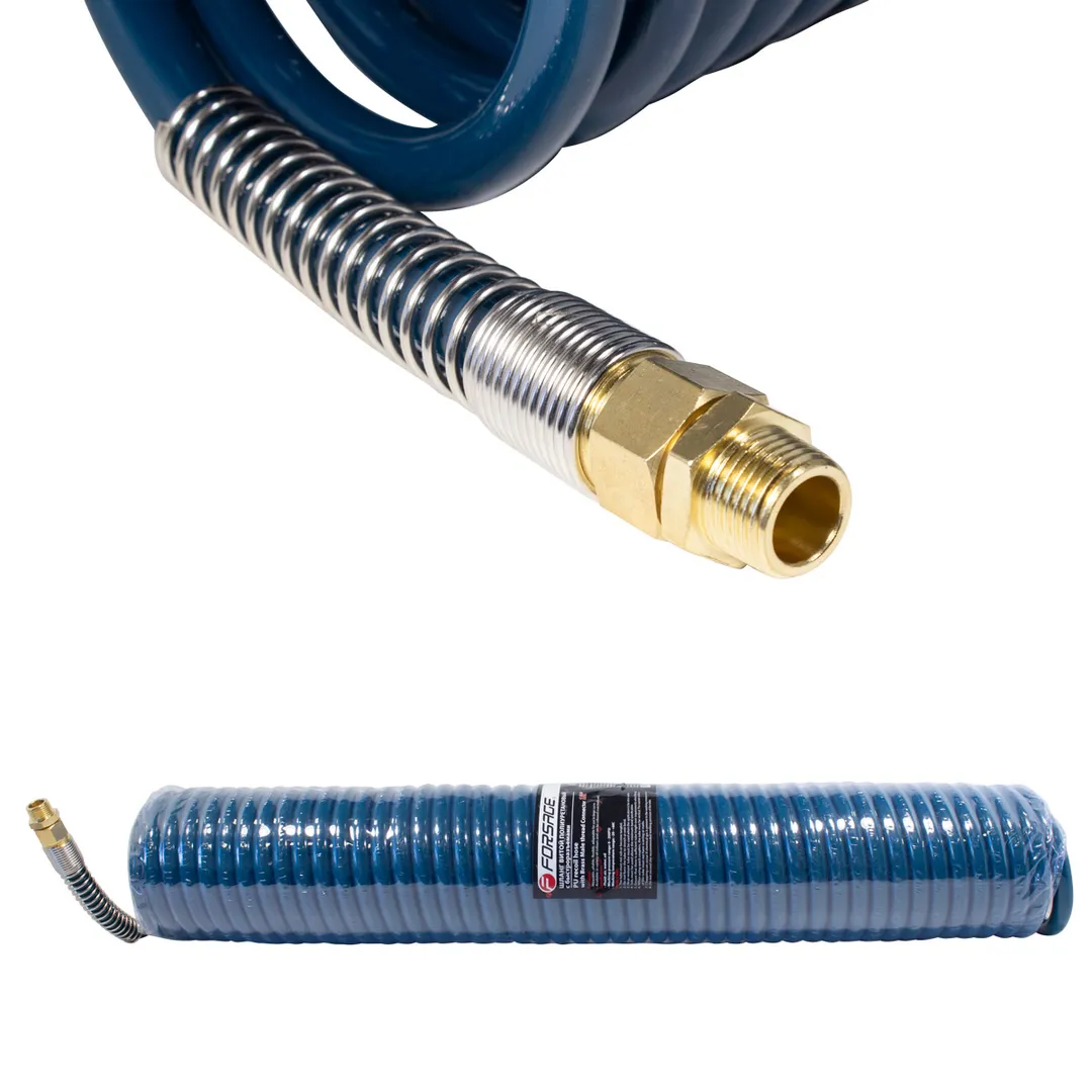 Шланг пневматический витой полиуретановый применяется для подачи воздуха от компрессора к пневматическому инструменту. Изготовлен из полиуретана, отличается прочностью и удобством эксплуатации. Спиральное исполнение шланга предотвращает его перегибы. Шланг оснащён штуцером рапид мама с одной стороны и рапид папа с другой.