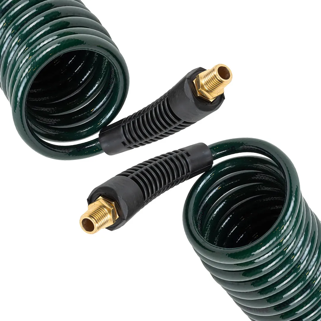 Шланг пневматический витой полиуретановый 6.5мм х 10мм х 15м с резьбовыми наконечниками 1/4''.